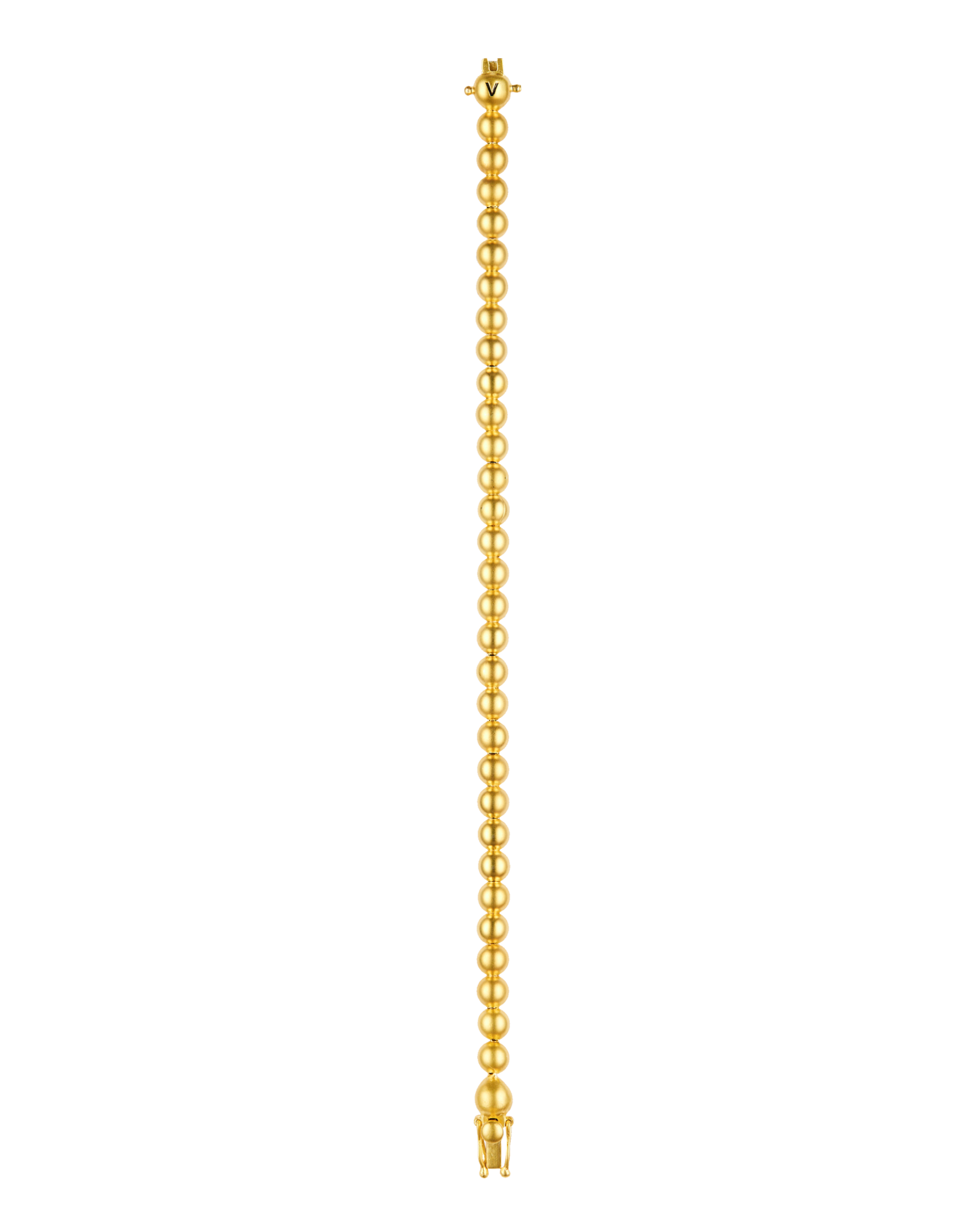 Beaded bracelet with a silver chain inside in a satin finish. Please add about 1/2 – 3/4 inch to your wrist measurements for the bracelet size.