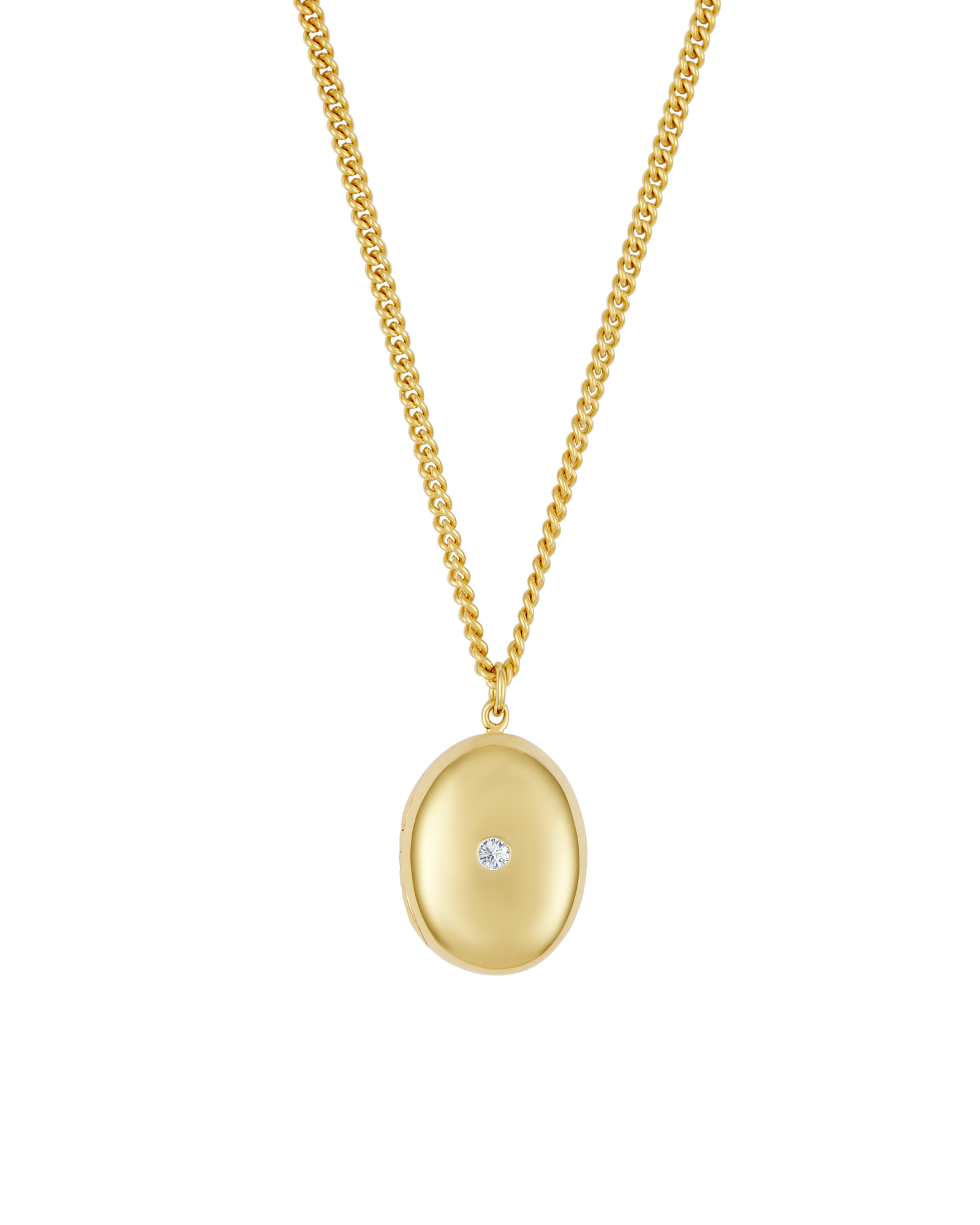 Chunky locket with an insert inside to hold a photo. Featuring a diamond on the outside of the locket.