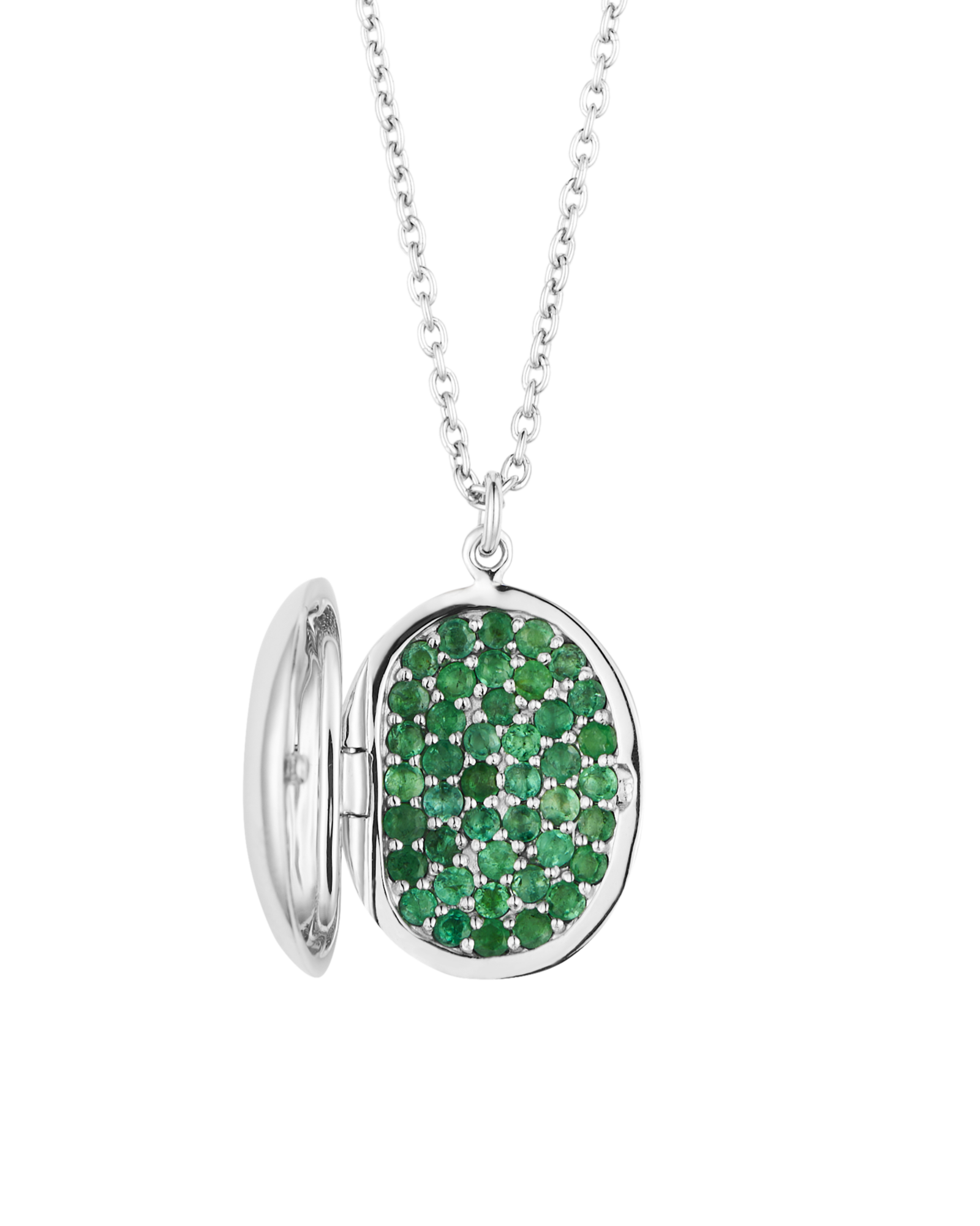 Gem Yim Pavé Pritsana Locket Necklace, Emerald