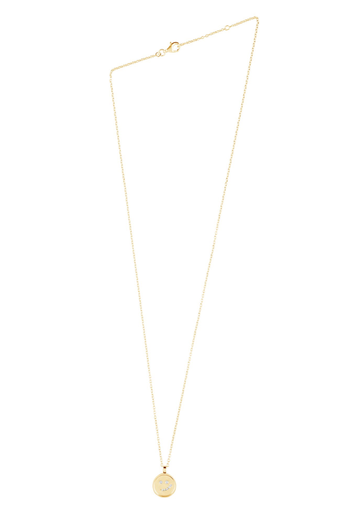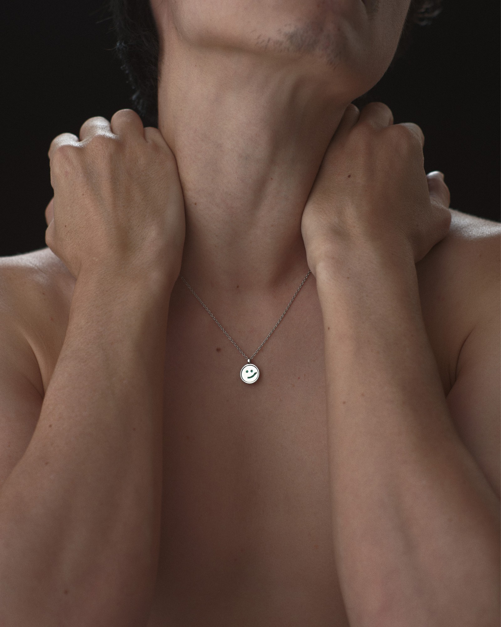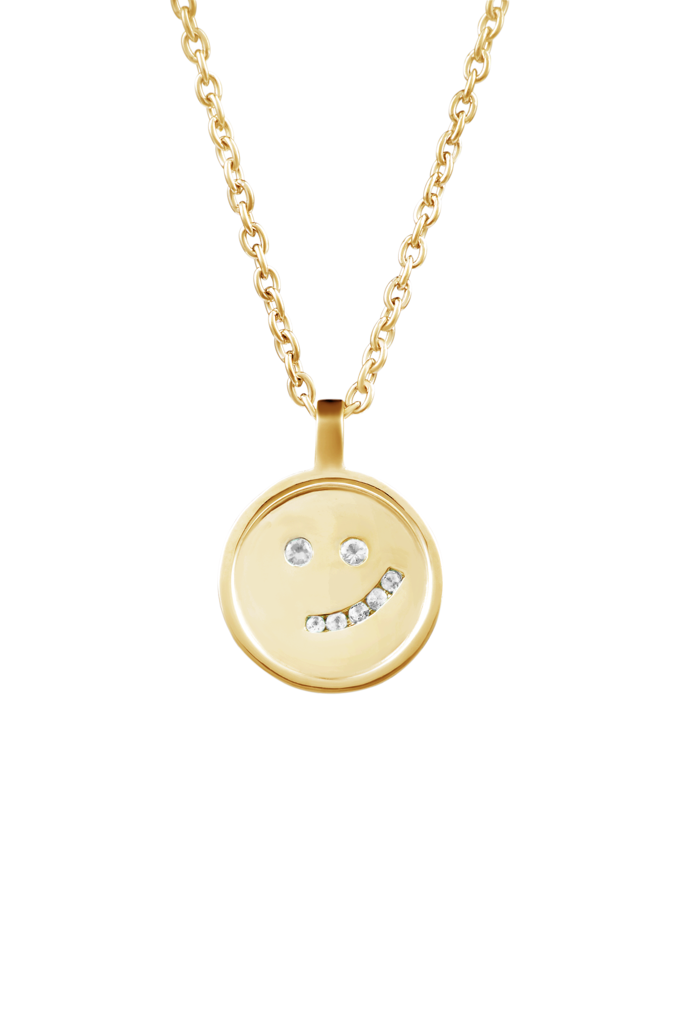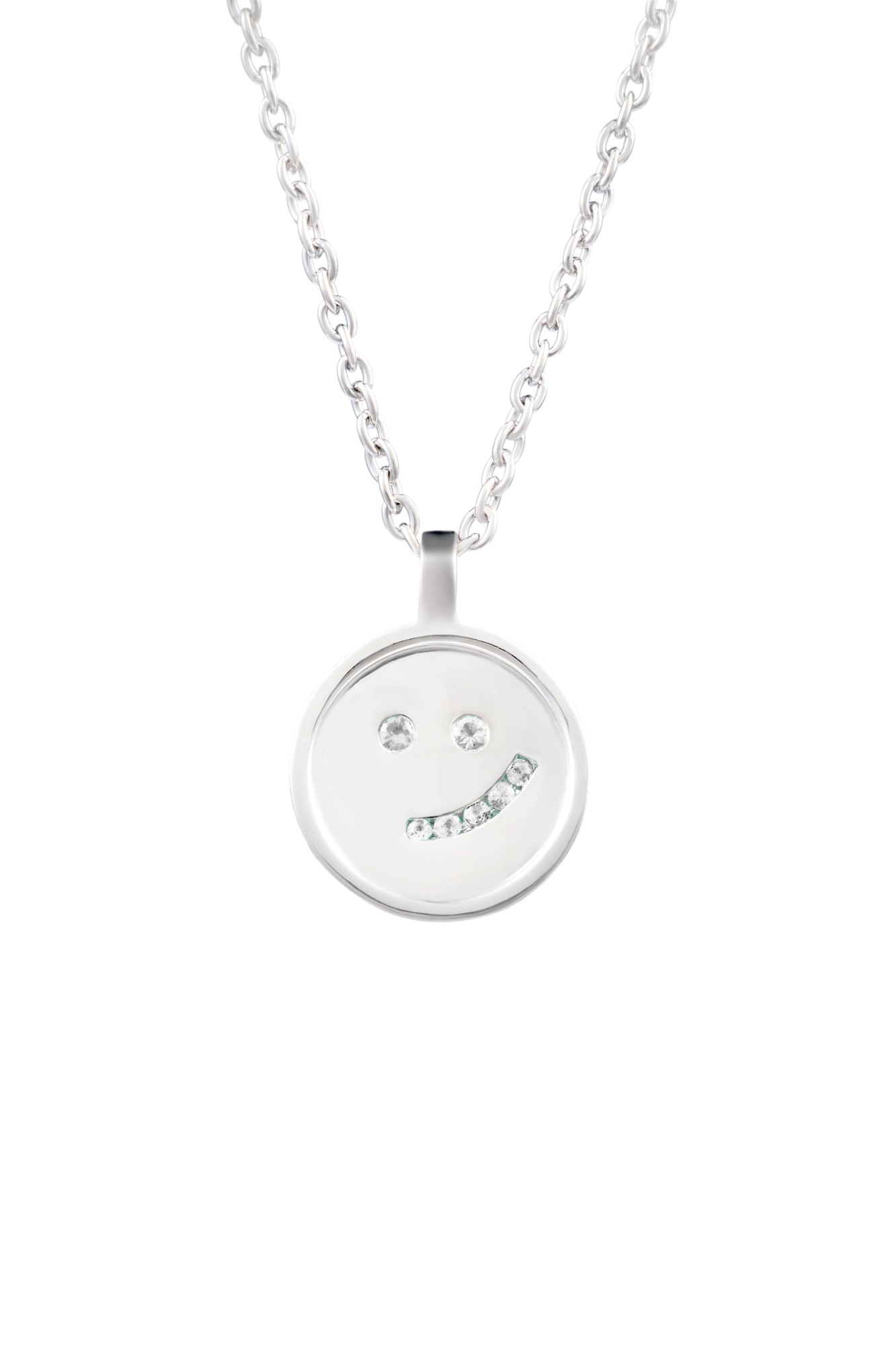 In Thai, “Yim” means “smile.” This fun necklace features white topaz for the smiley face on a circular pendant. Gemstones may vary in color.