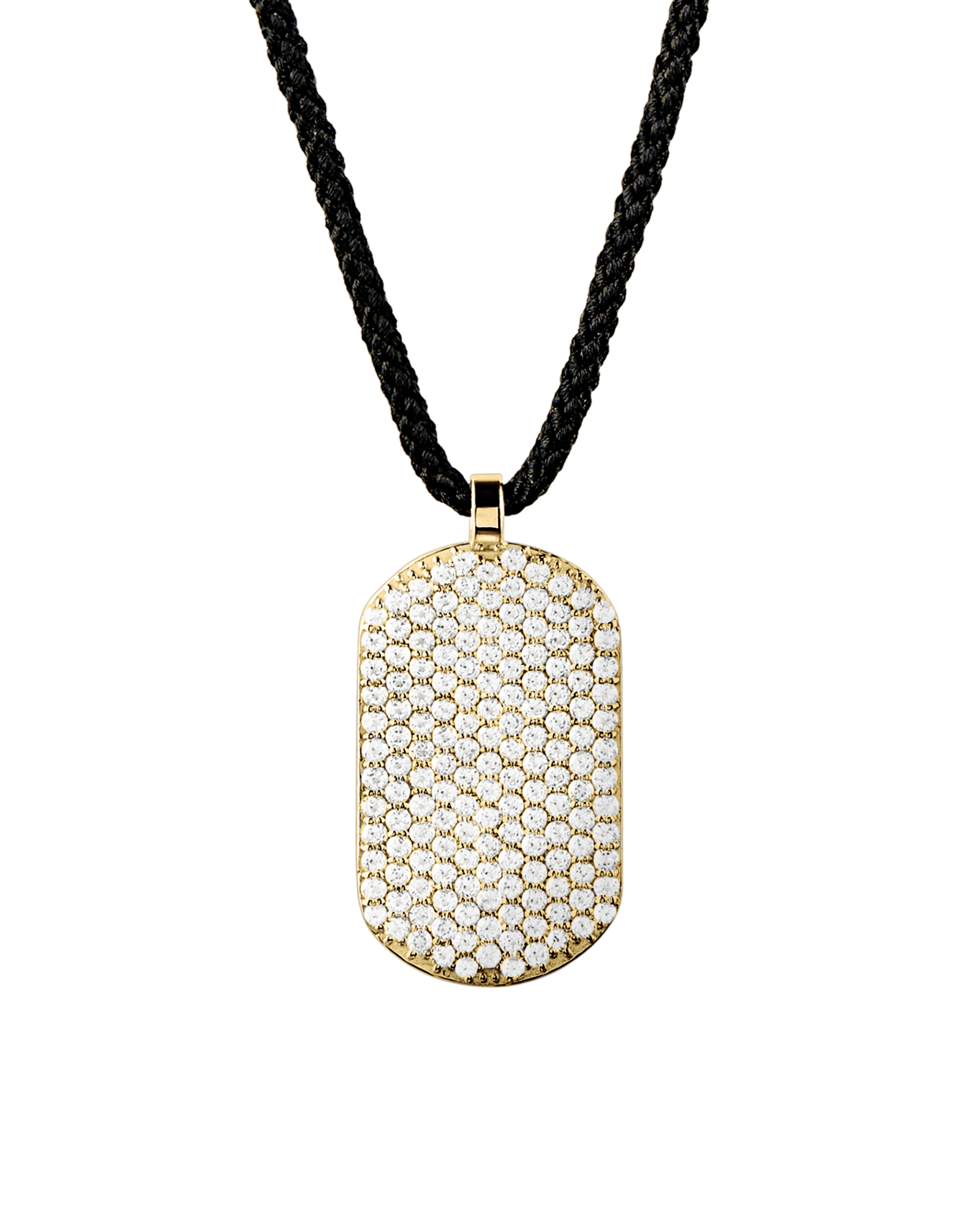 Our signature ID pendant is set with white topaz on the front and around the pendant. Paired with black Japanese silk cord to create this ultimate laidback luxurious necklace. Kindly note that necklace lengths can vary slightly.