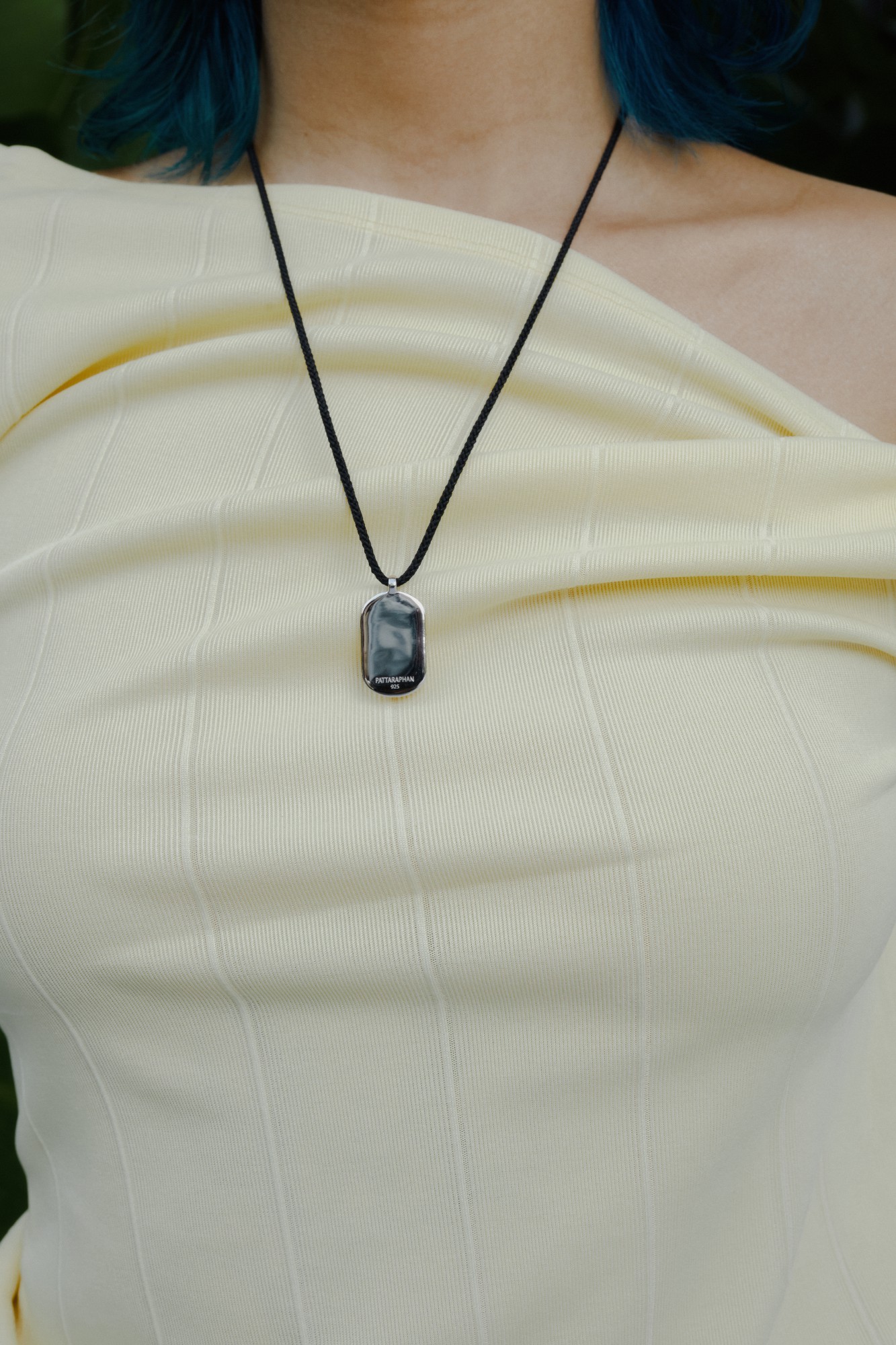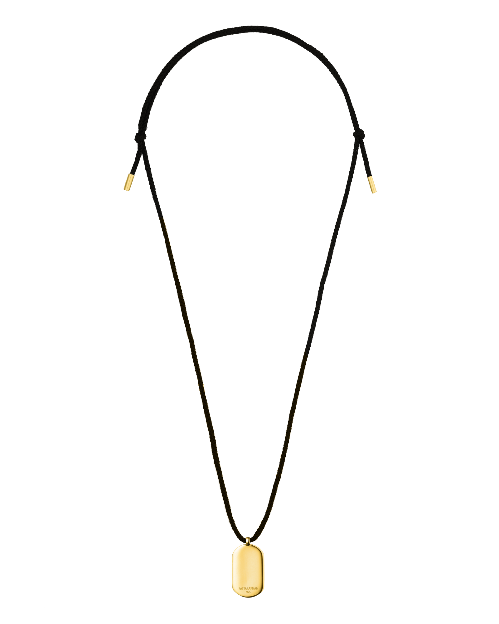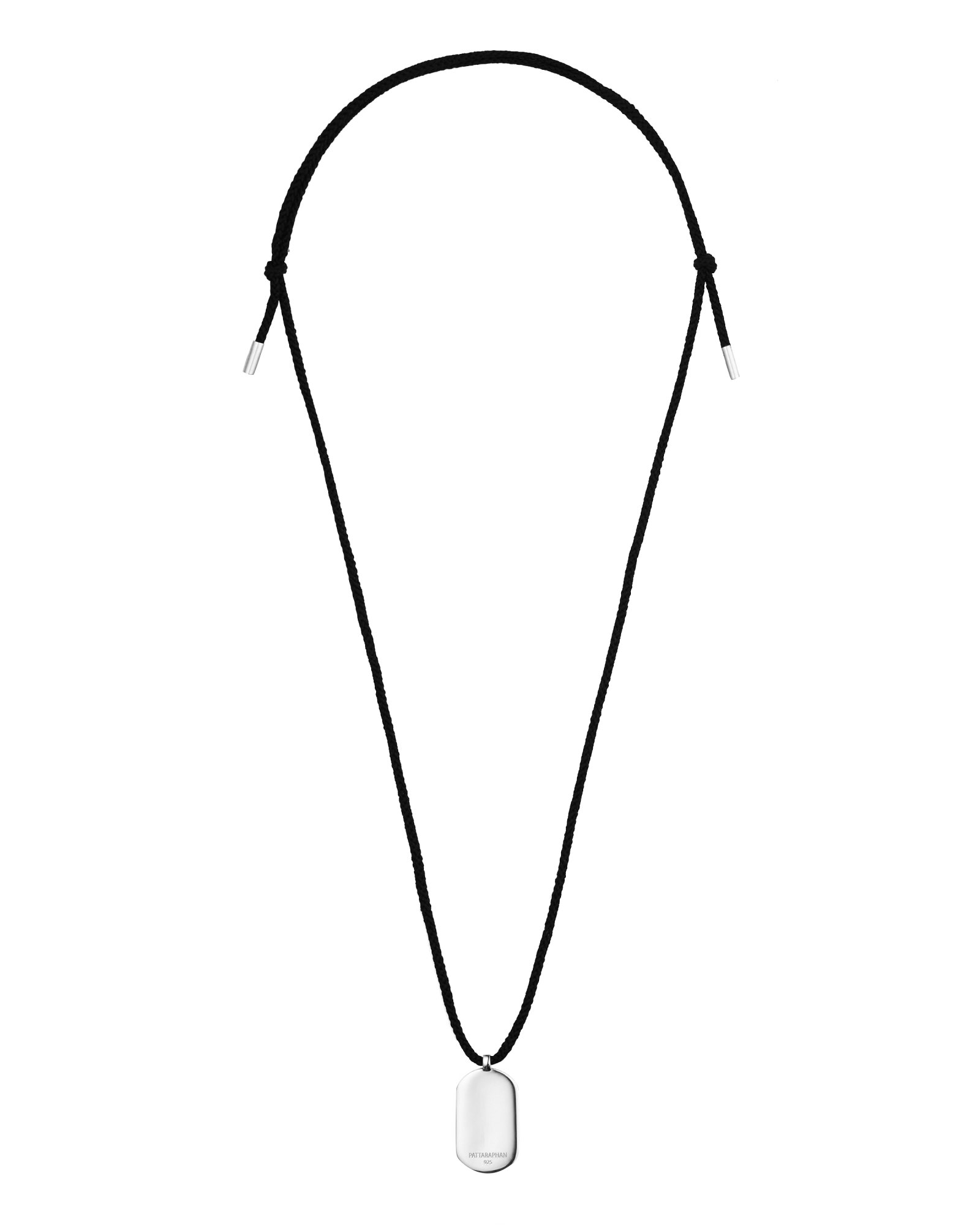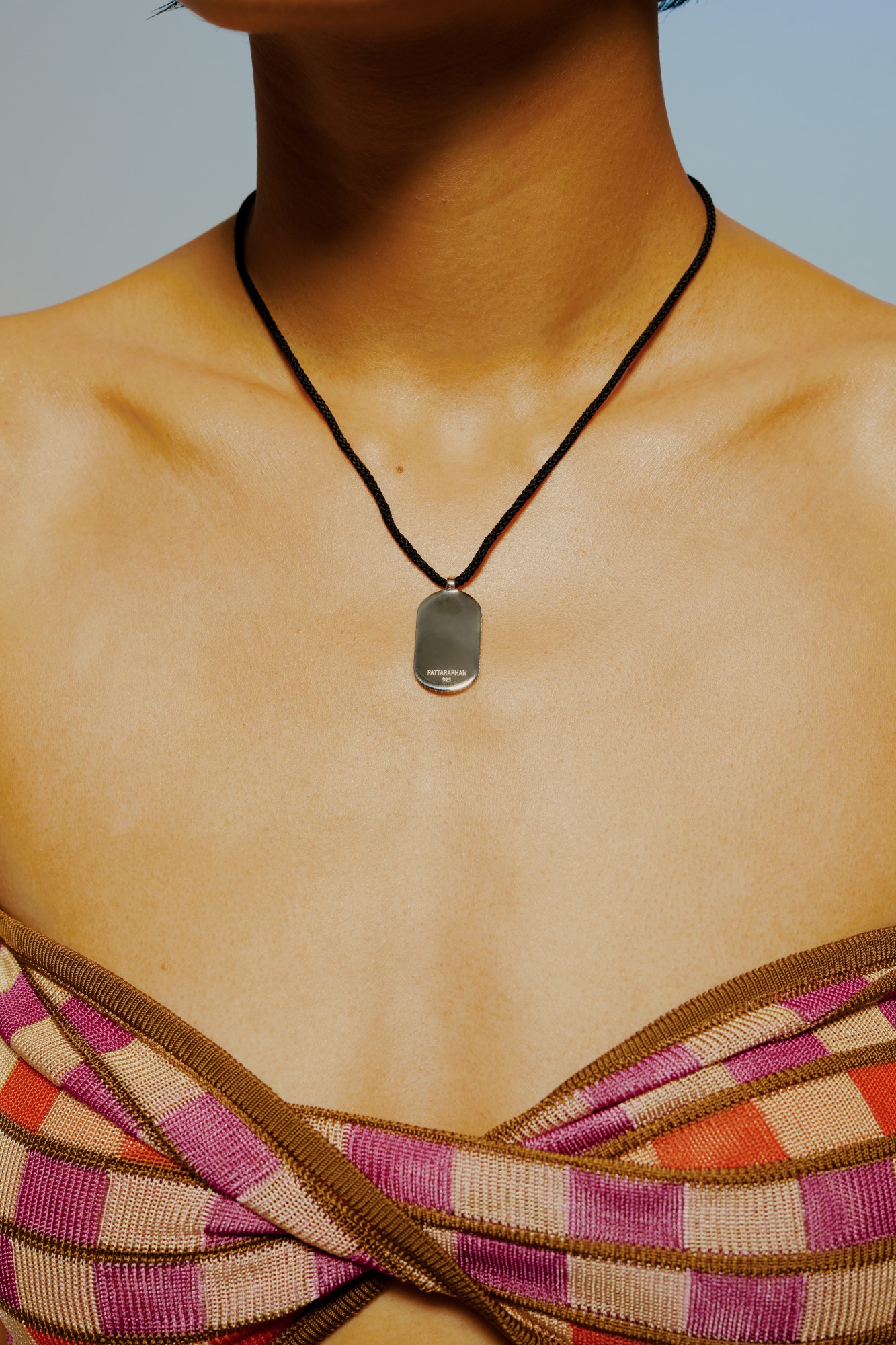Our signature ID pendant is paired with black Japanese silk cord to create this ultimate laidback luxurious necklace. Kindly note that necklace lengths can vary slightly.