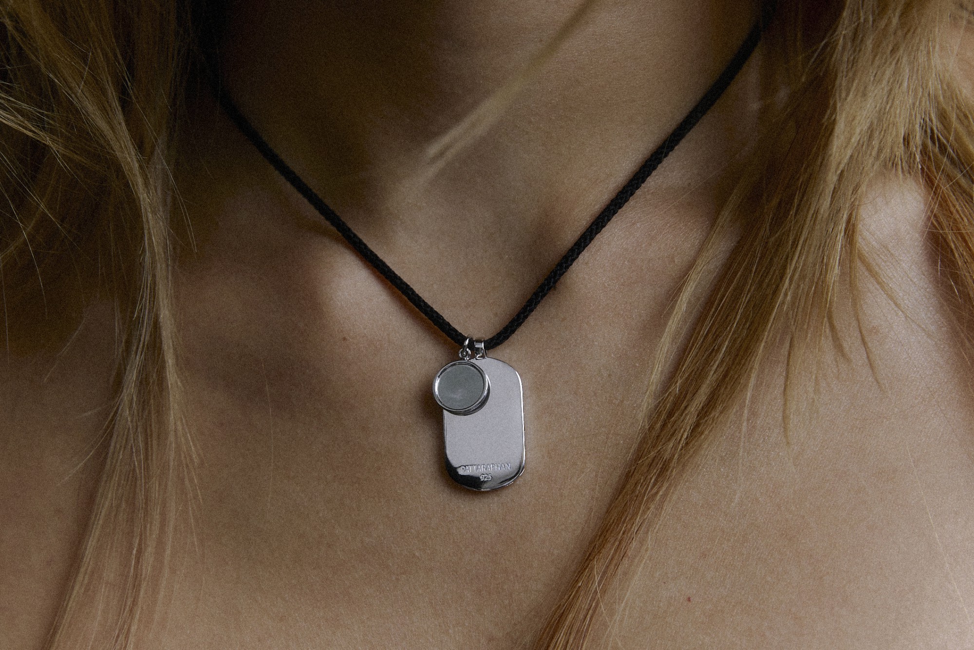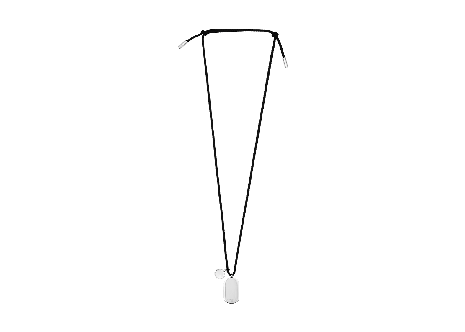 Our signature ID pendant is paired with black Japanese silk cord to create this ultimate laidback luxurious necklace. A circle charm is available as plain (ready to ship) and with personalization (made to order, 2-3 weeks).