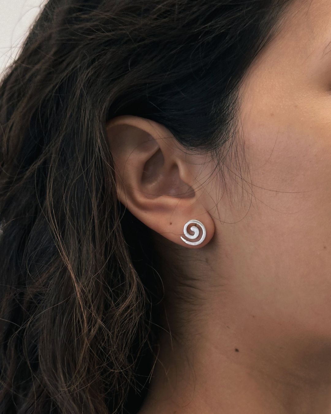 The Mini Repeller II Earrings offer a more compact interpretation of the spiral form. Maintaining the same continuous curve, the matte-finished design is scaled down to sit closer to the ear for this “mini” size — creating a lighter, more understated presence while preserving the clarity of the original silhouette.