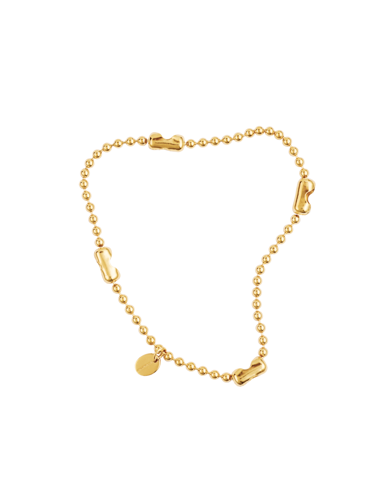 The Neo Chain Bracelet features a uniform series of links separated by four identical closure elements, all evenly spaced. Only one functions as the clasp, while the other three are inserted to create symmetry. The bracelet is designed to be for everyday wear — layered or solo.