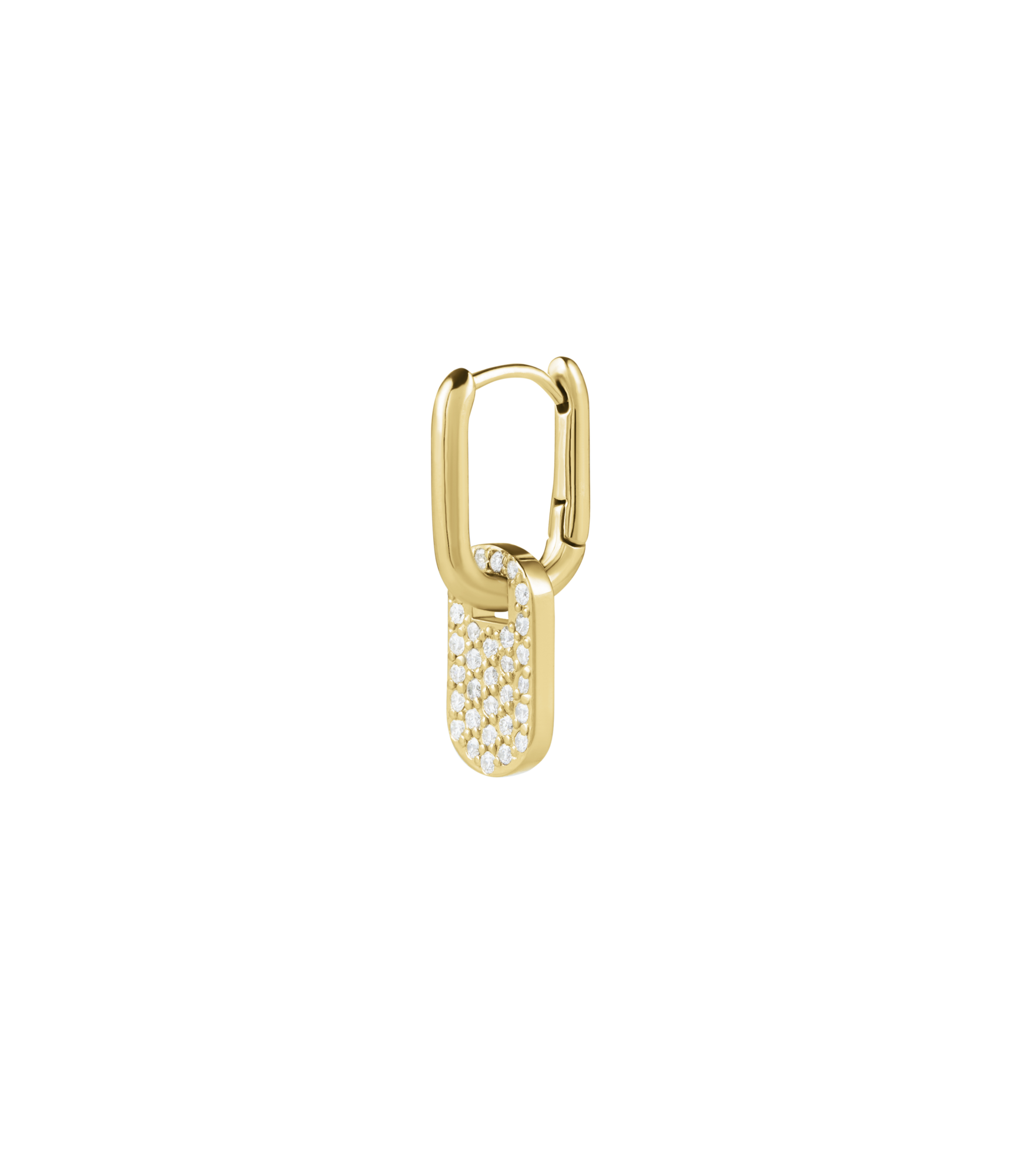 Baby ID Hoop Earrings, perfect for everyday and for layering. Handcrafted hoops with our baby size ID charms with white topaz.