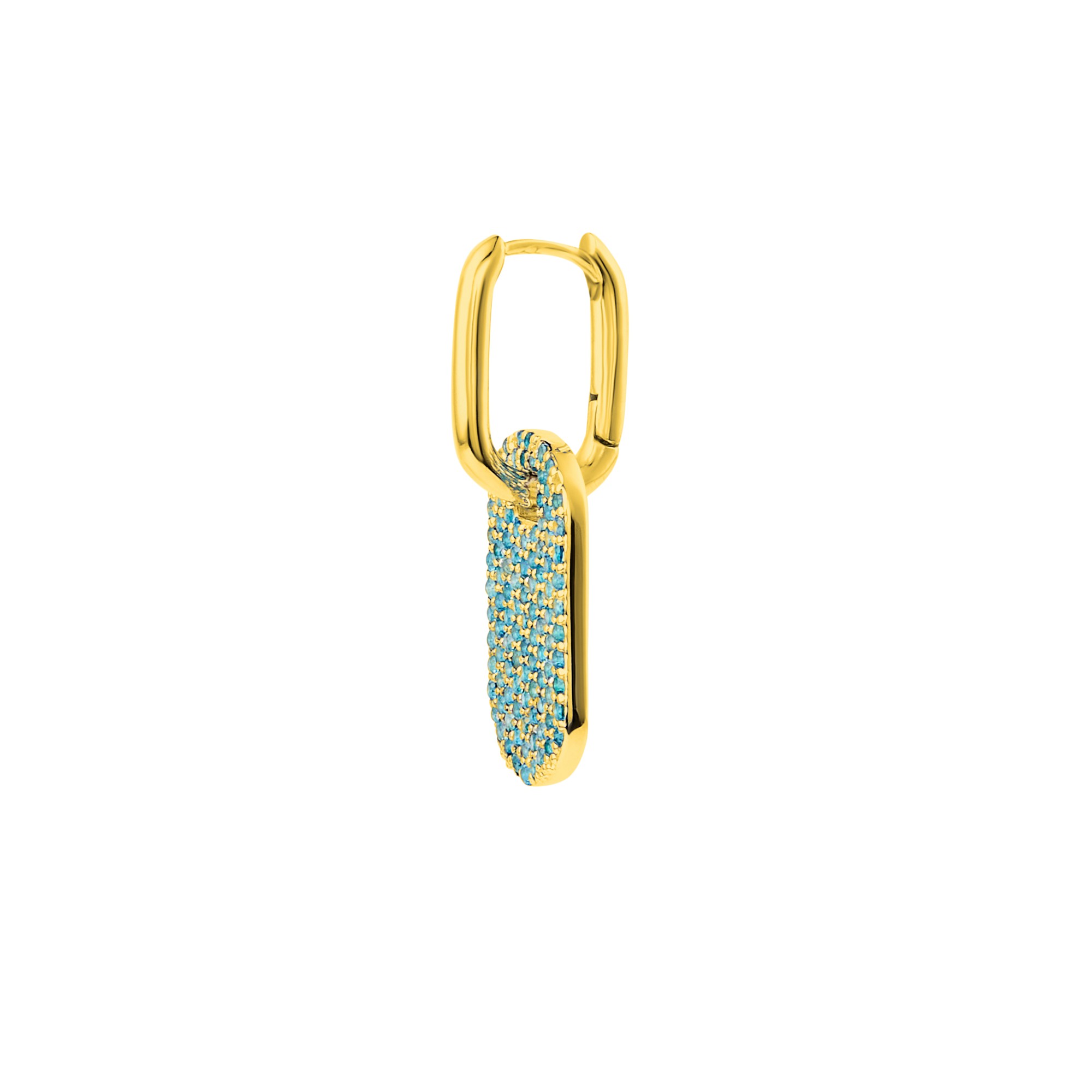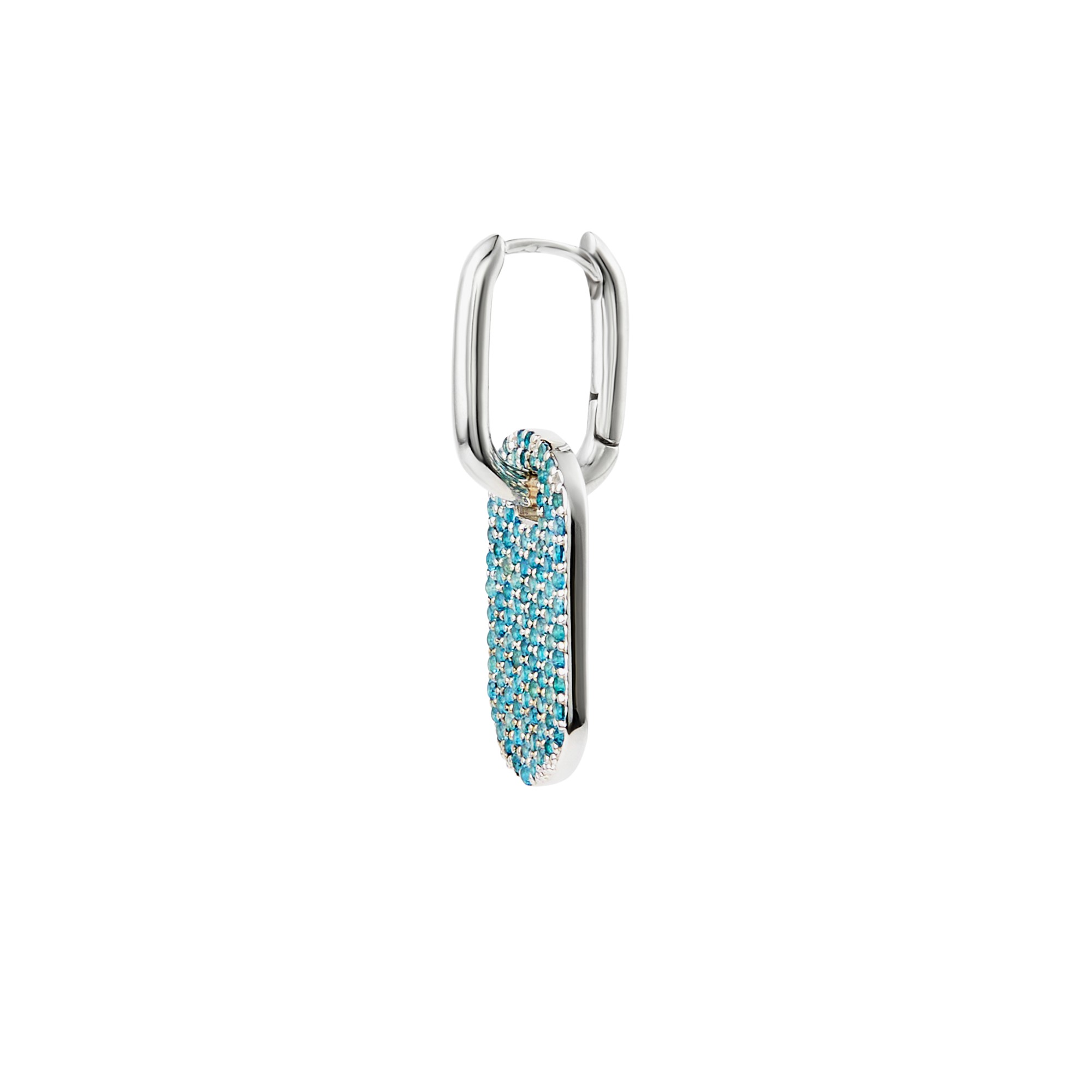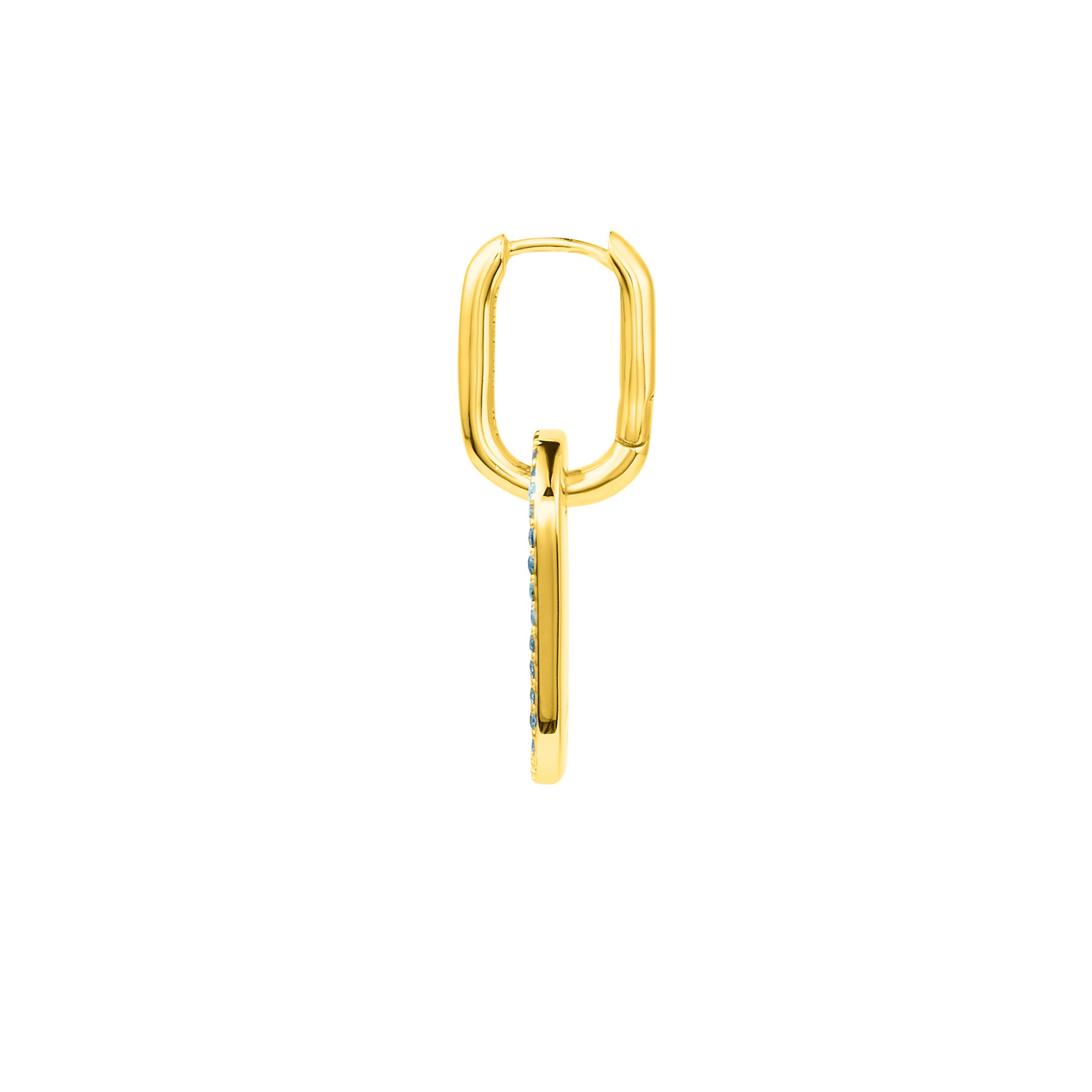 Handcrafted hoops with our medium size ID charms with London Blue Topaz. Gemstones may vary in color.