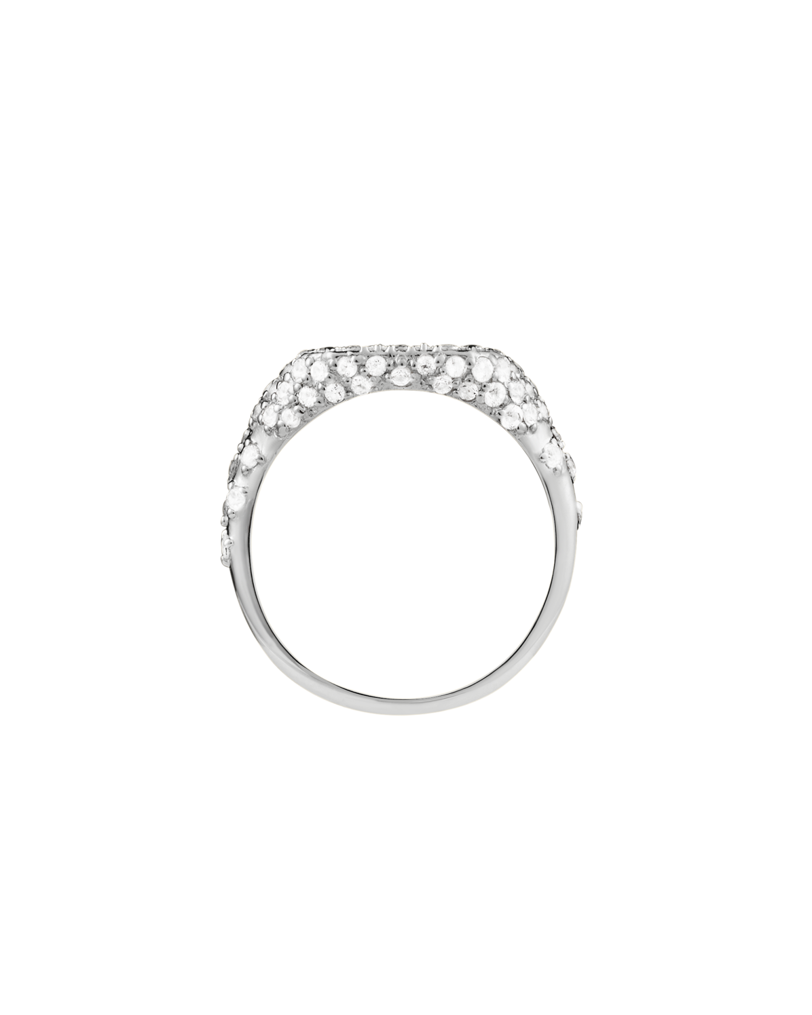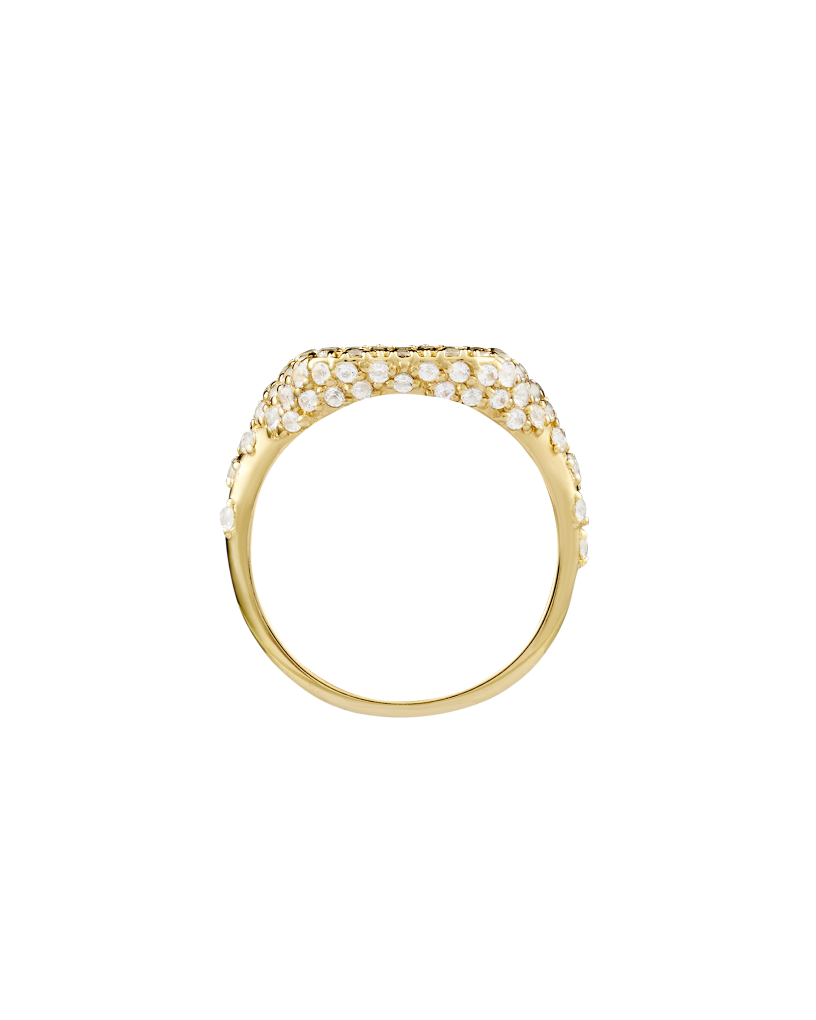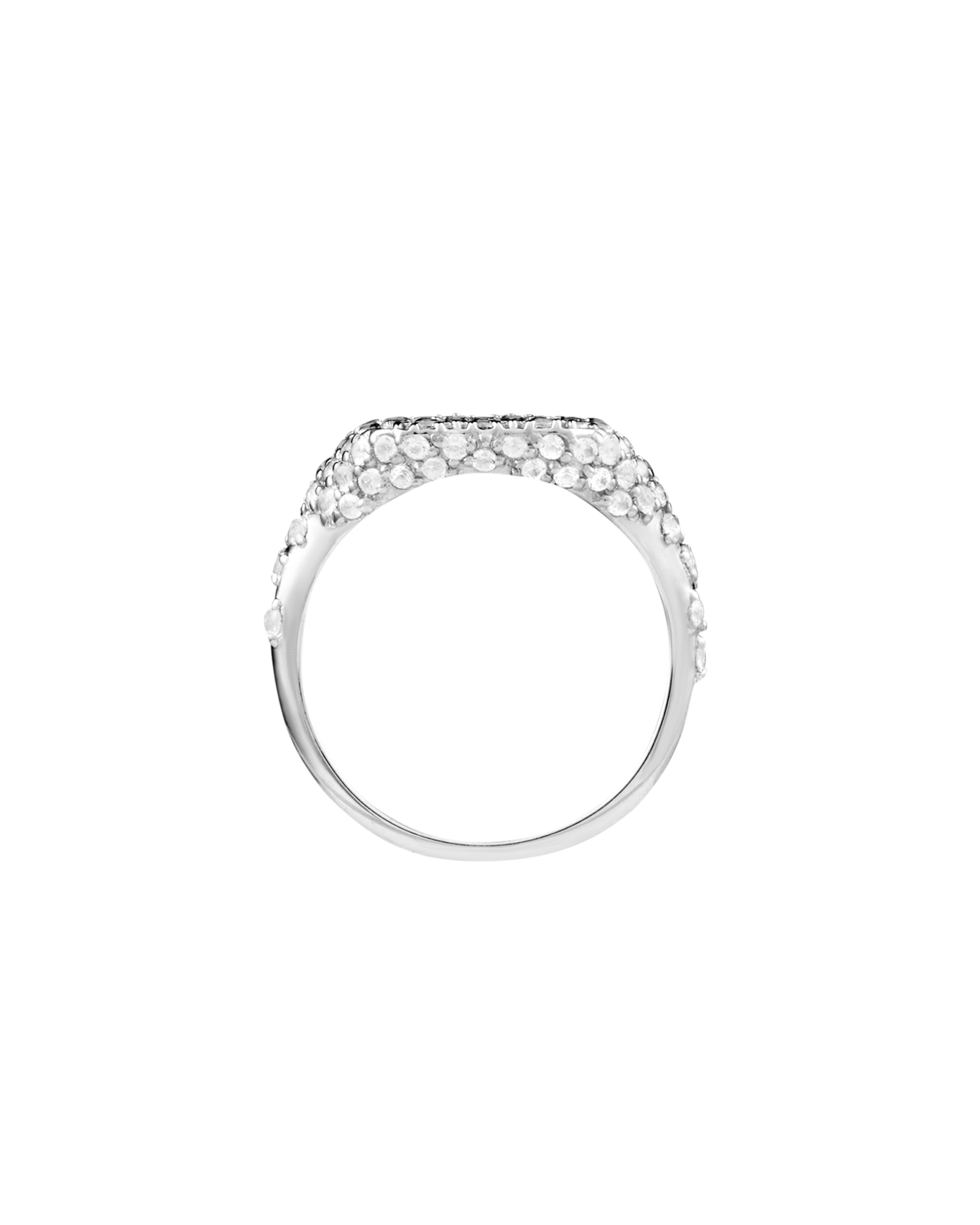 Beautiful everyday signet ring with beveled edges, featuring White Topaz.