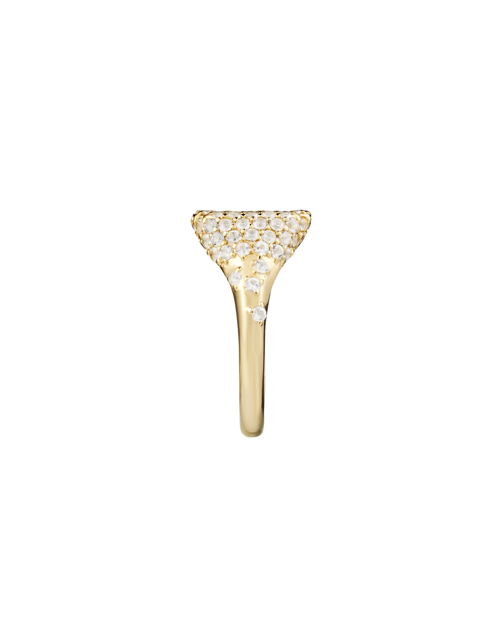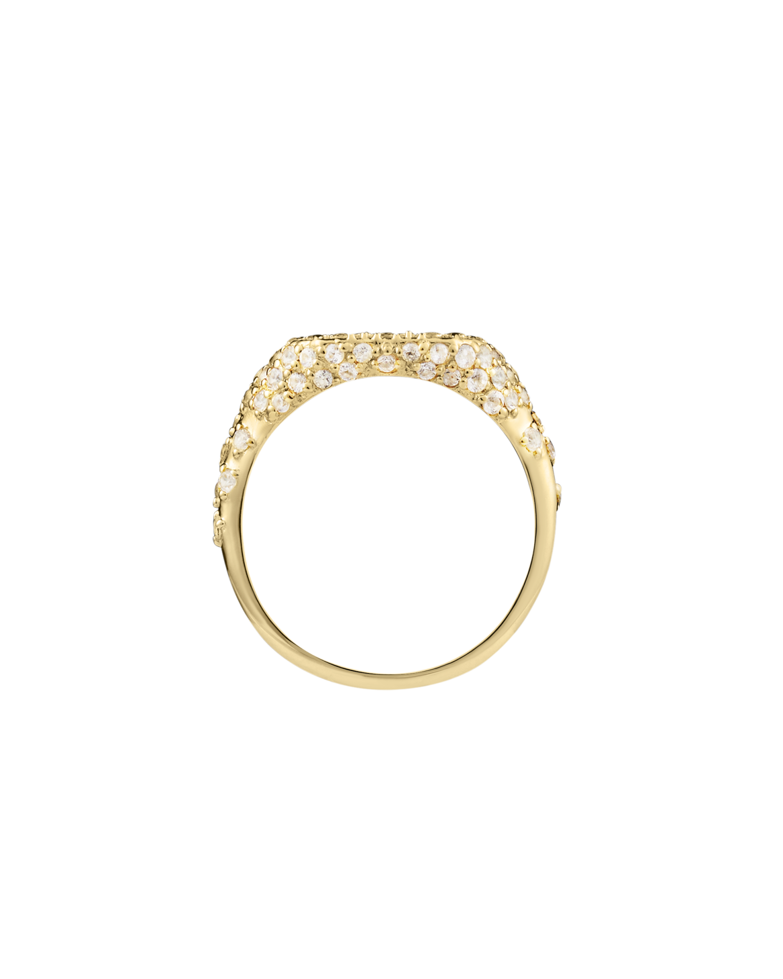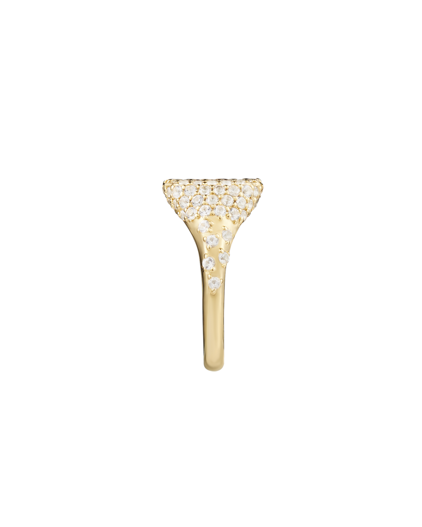 Beautiful everyday signet ring with beveled edges, featuring White Topaz.
