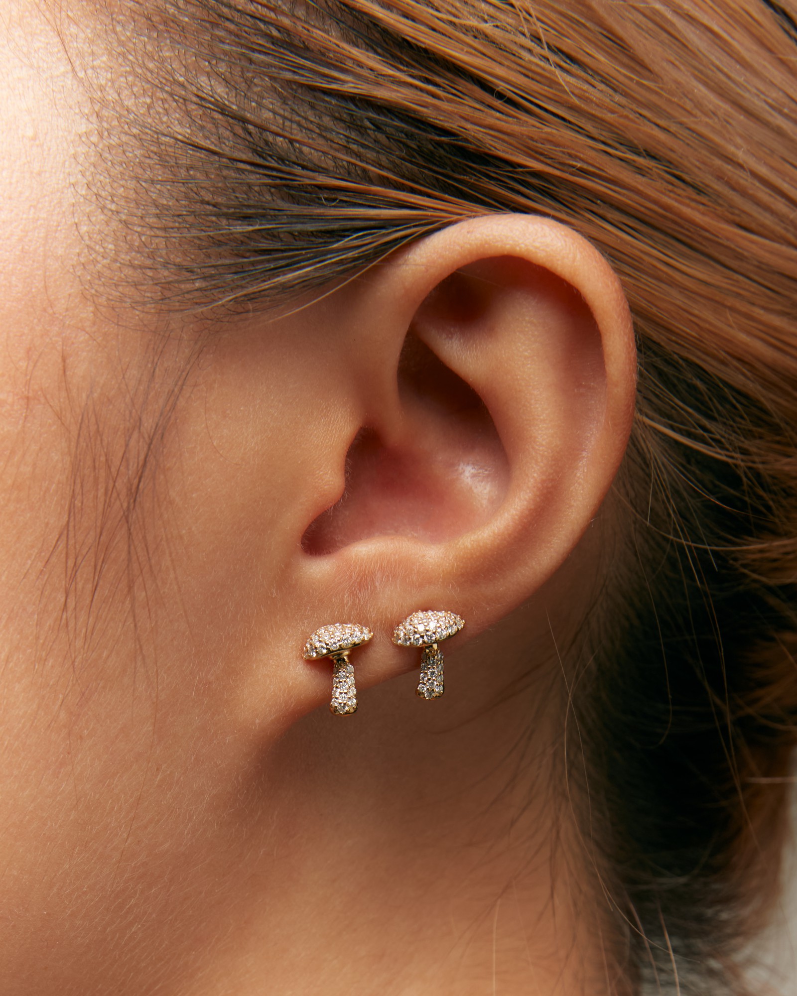 Elevated and cool, our pavé mushroom studs feature small mushroom shape encrusted with diamonds. Available as singles or pairs.