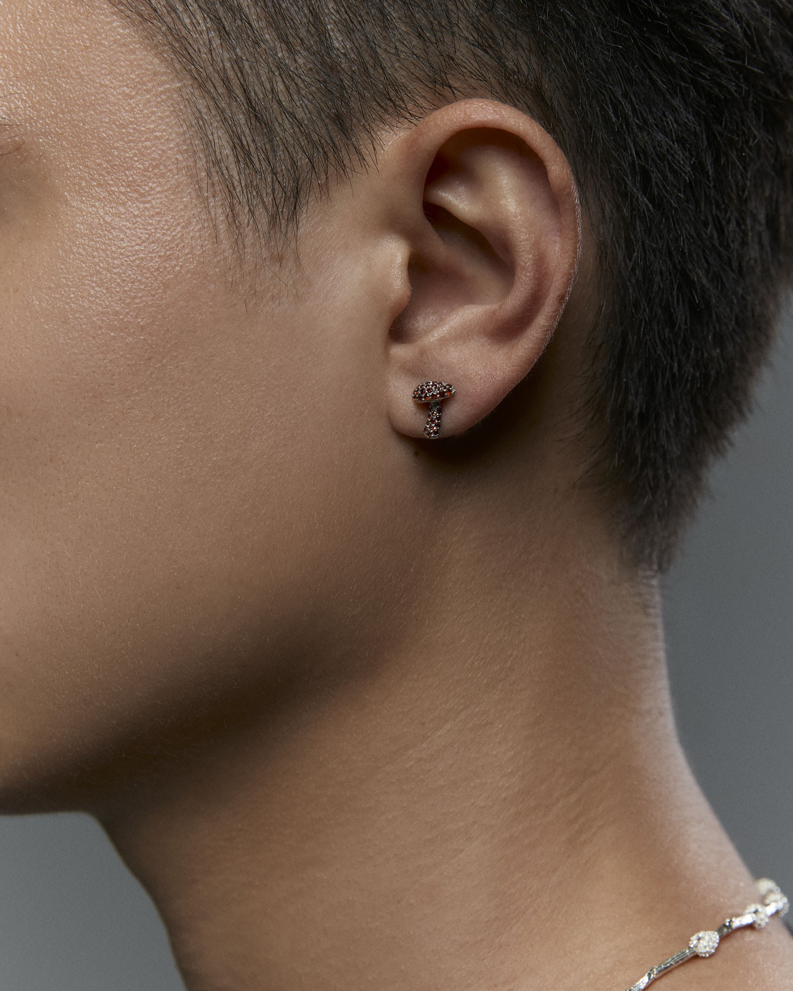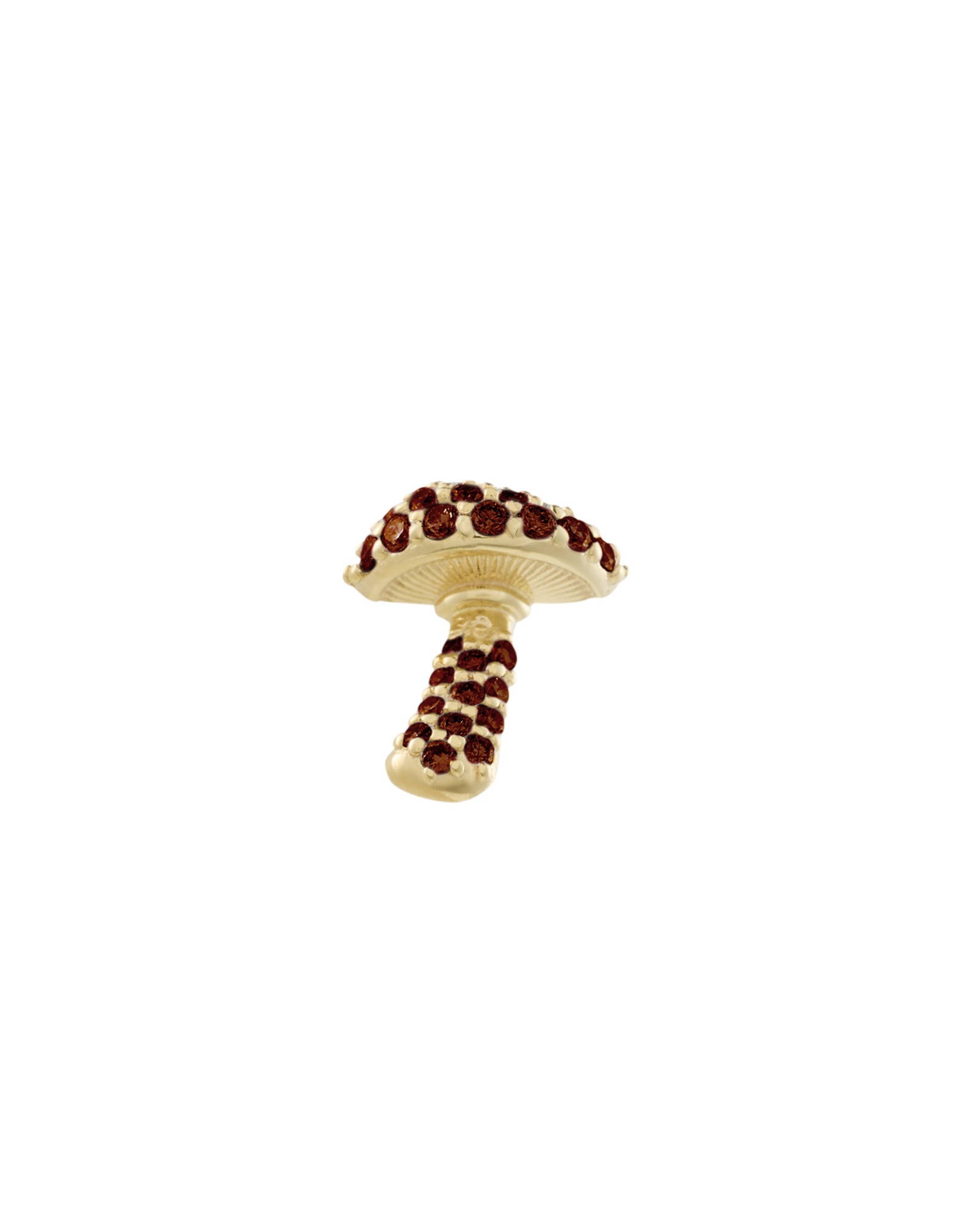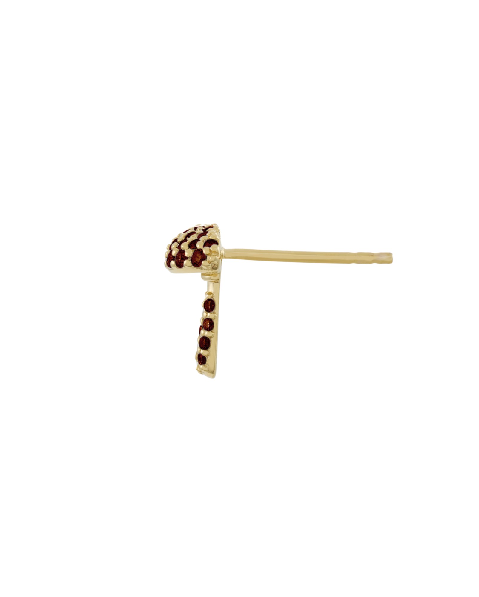 Elevated and cool, our pavé mushroom studs feature small mushroom shape encrusted with red garnet. Available as singles or pairs. Gemstones may vary in color.