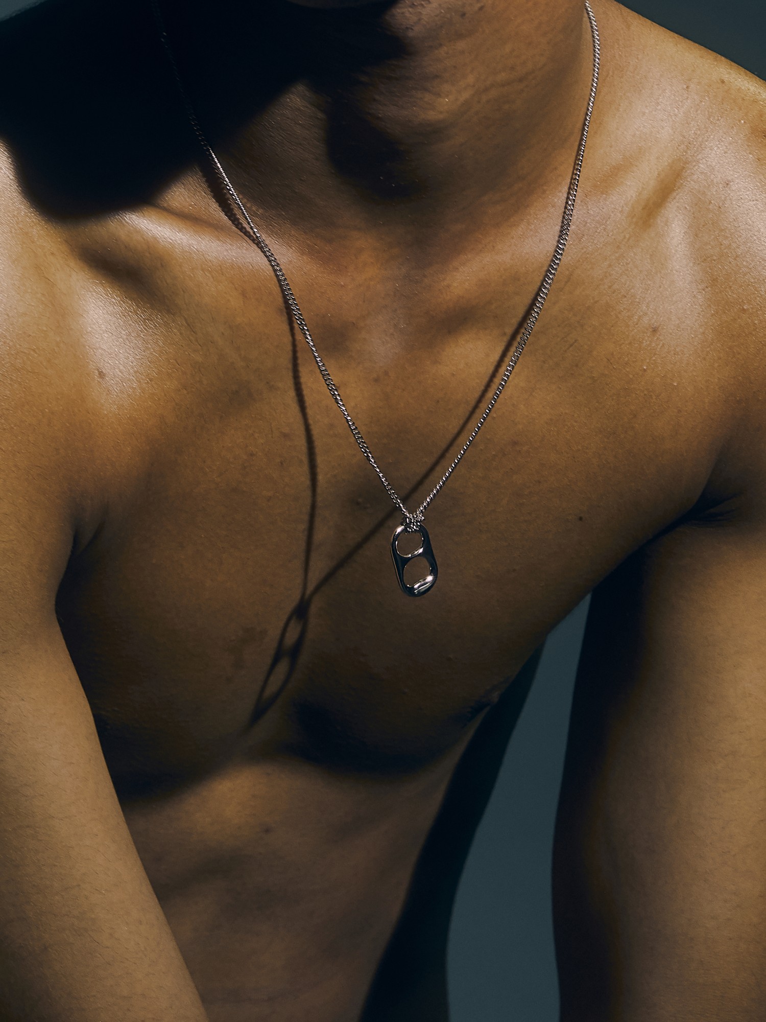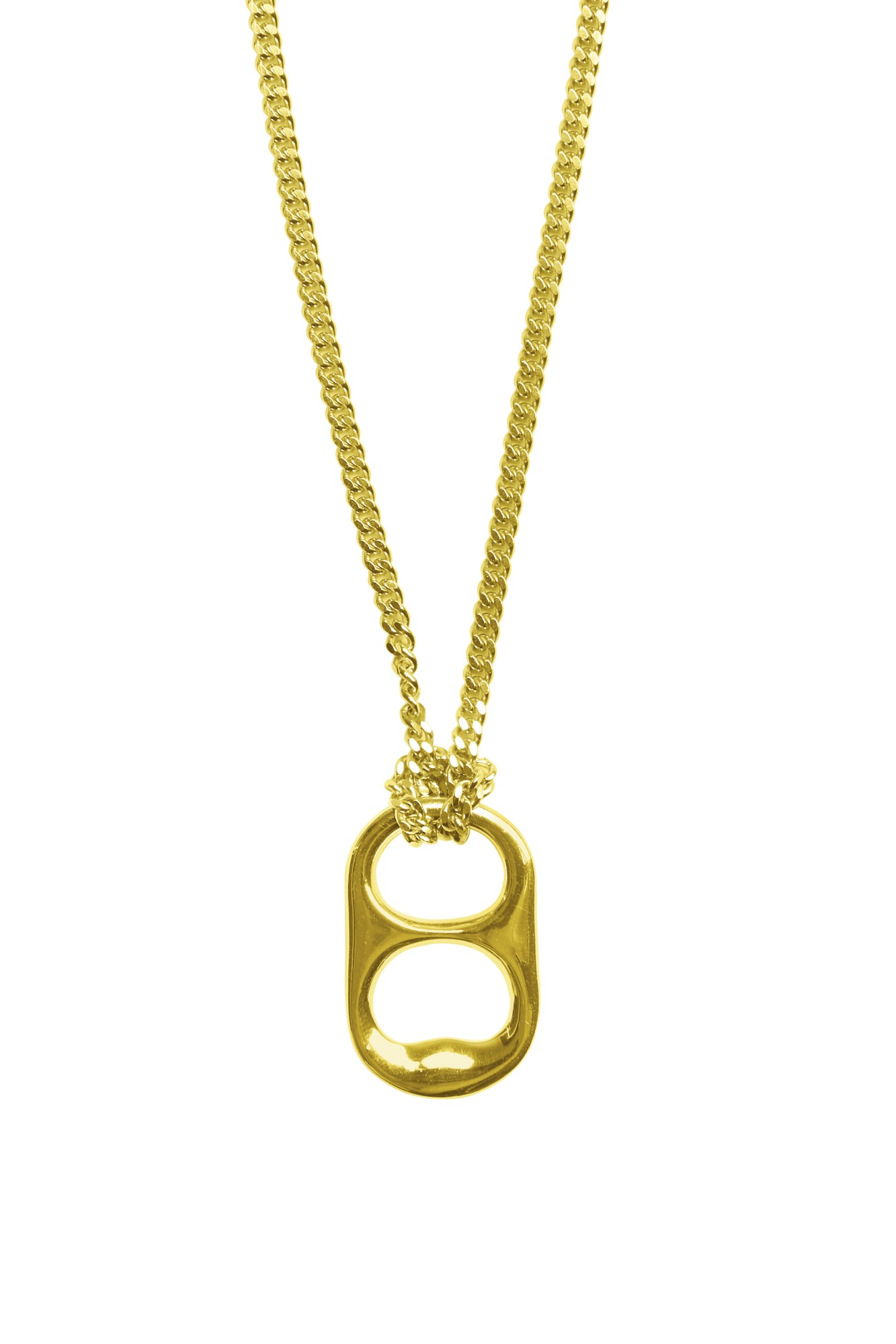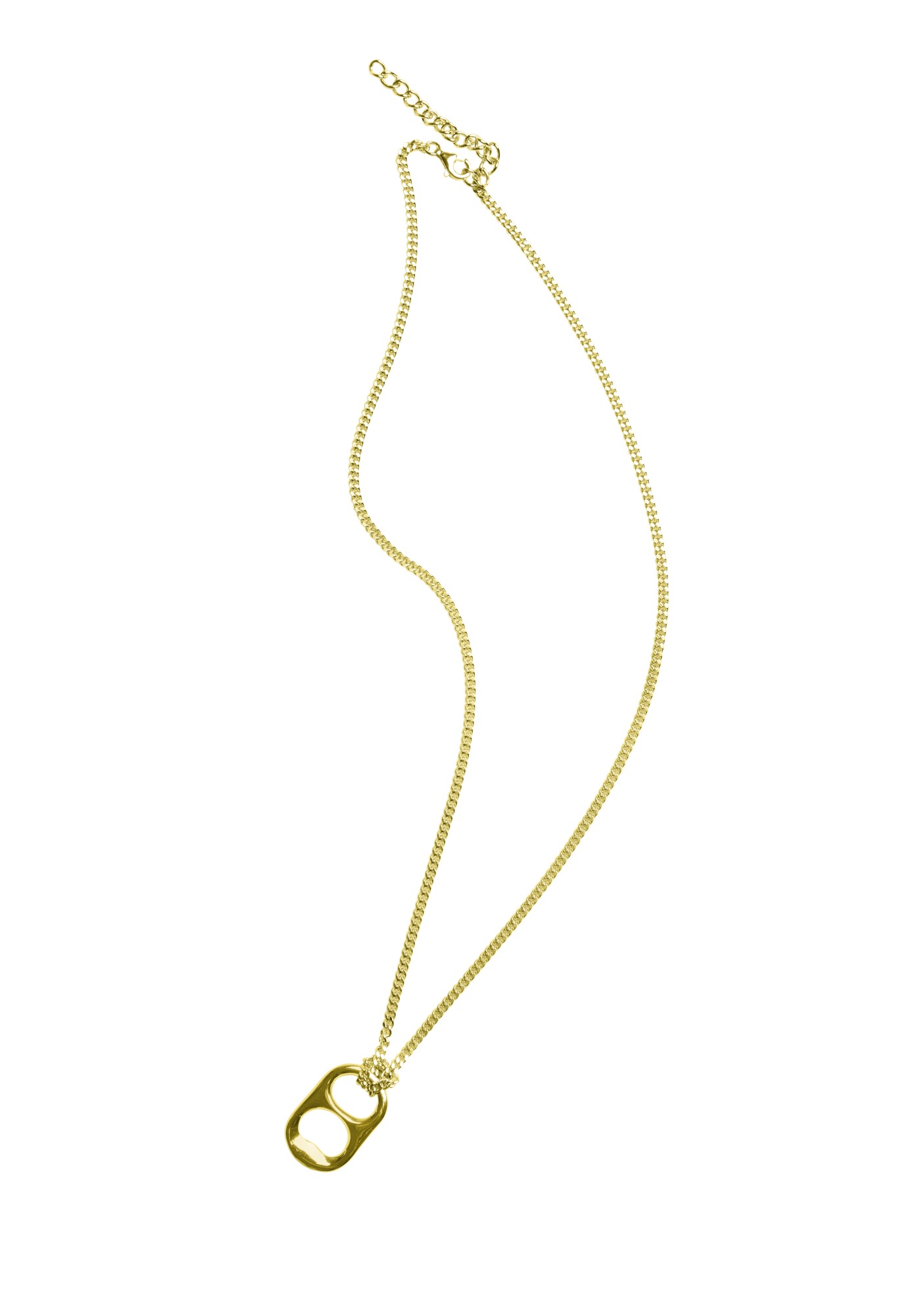 Signature curb chain necklace with a solid soda tab. Necklace is detachable. Each necklace length has 20mm extra chain.