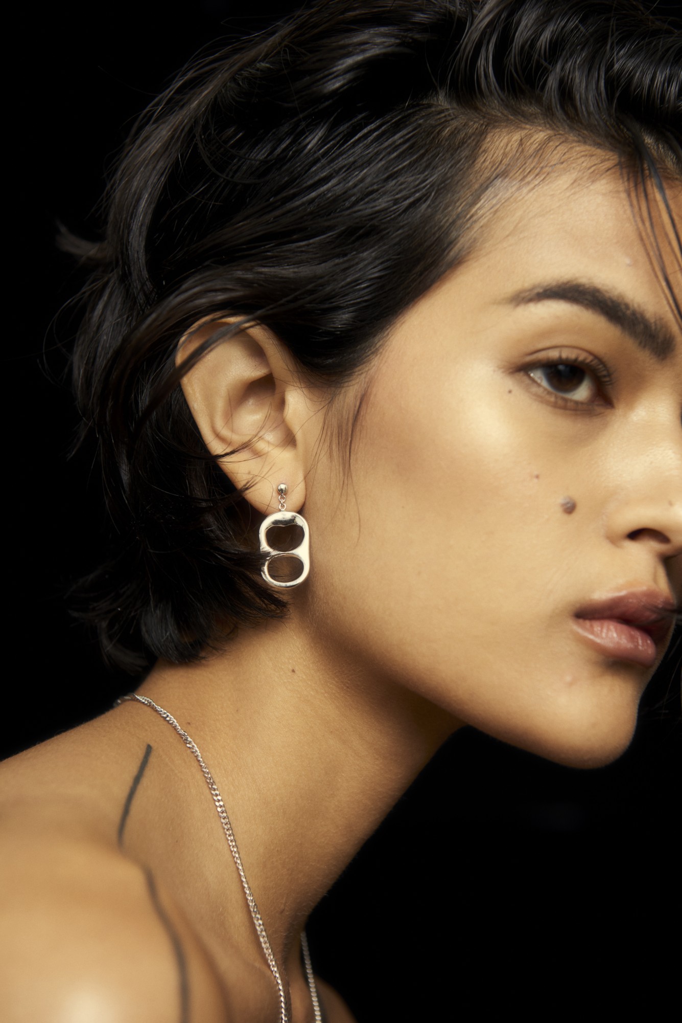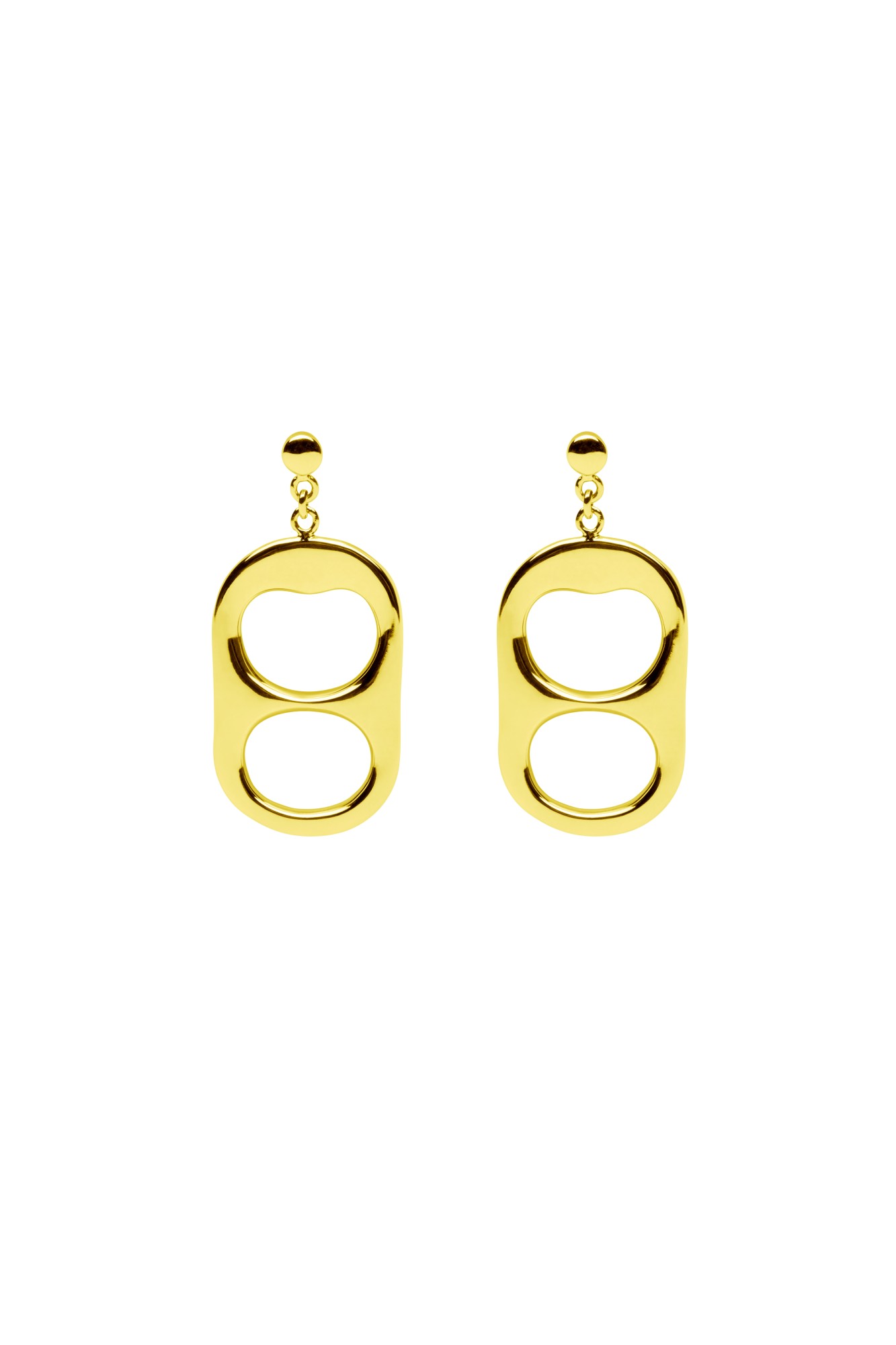 Signature earrings with solid soda tabs. Available as singles or pairs.