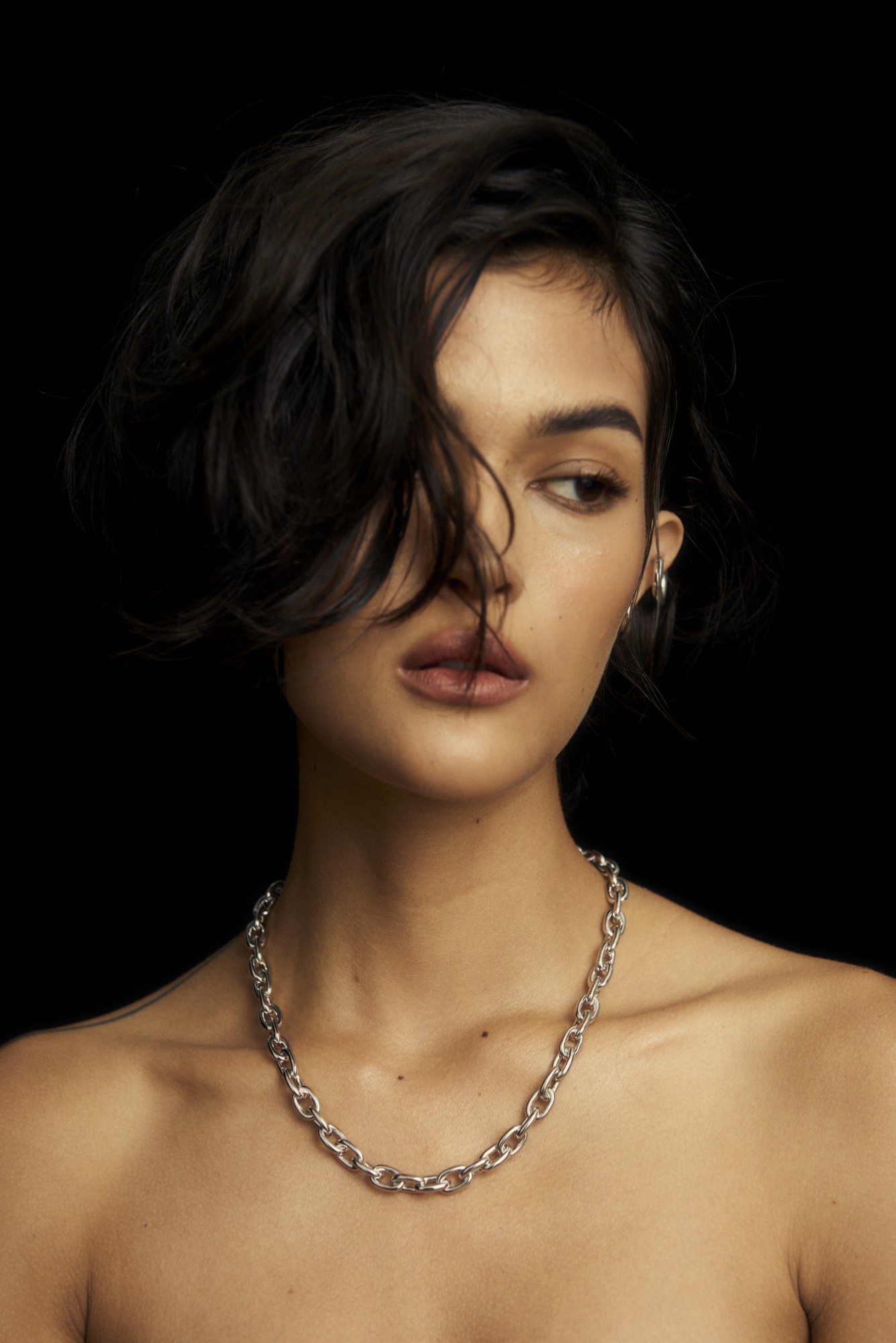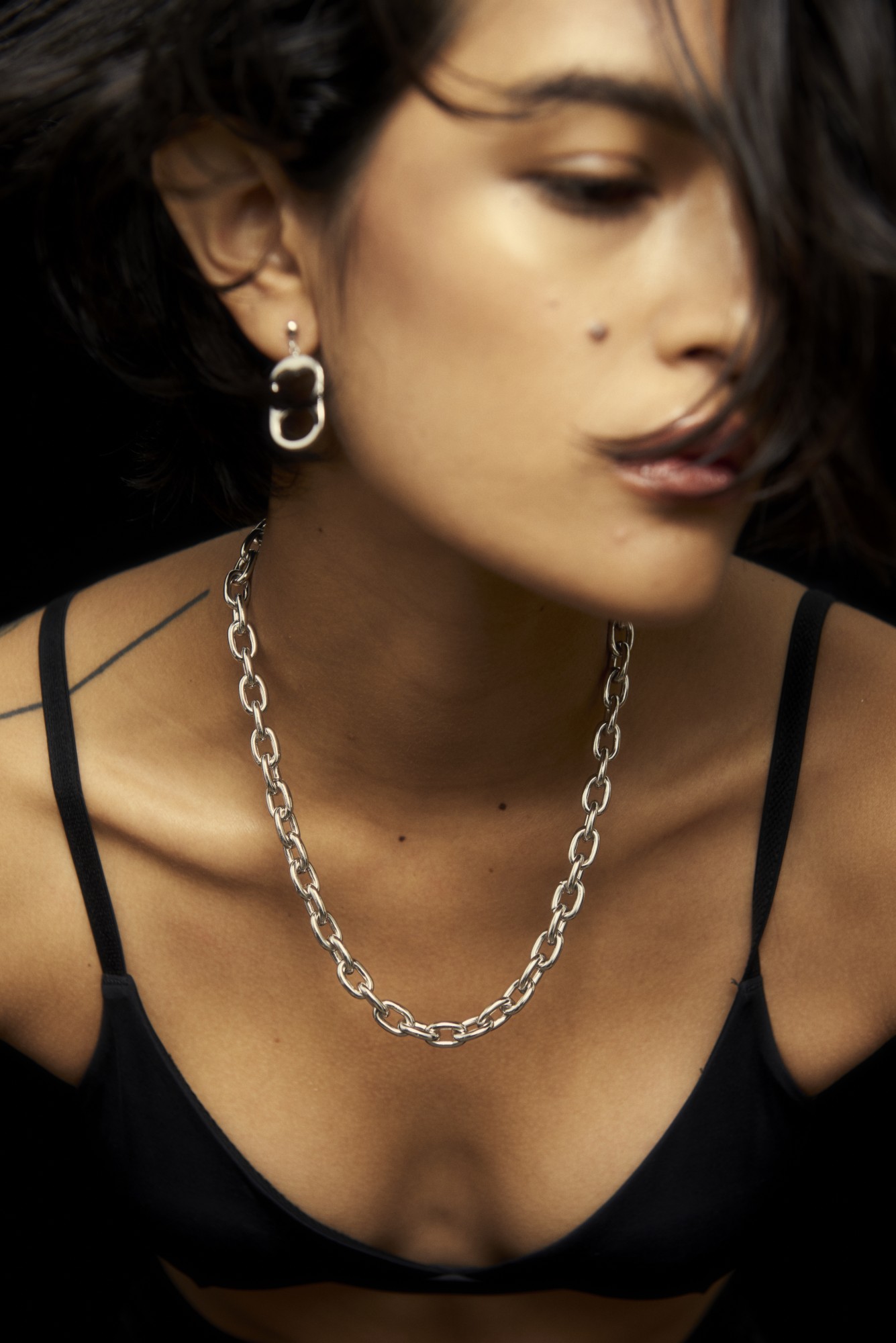 Chunky necklace with rounded links and a seamless custom push clasp.