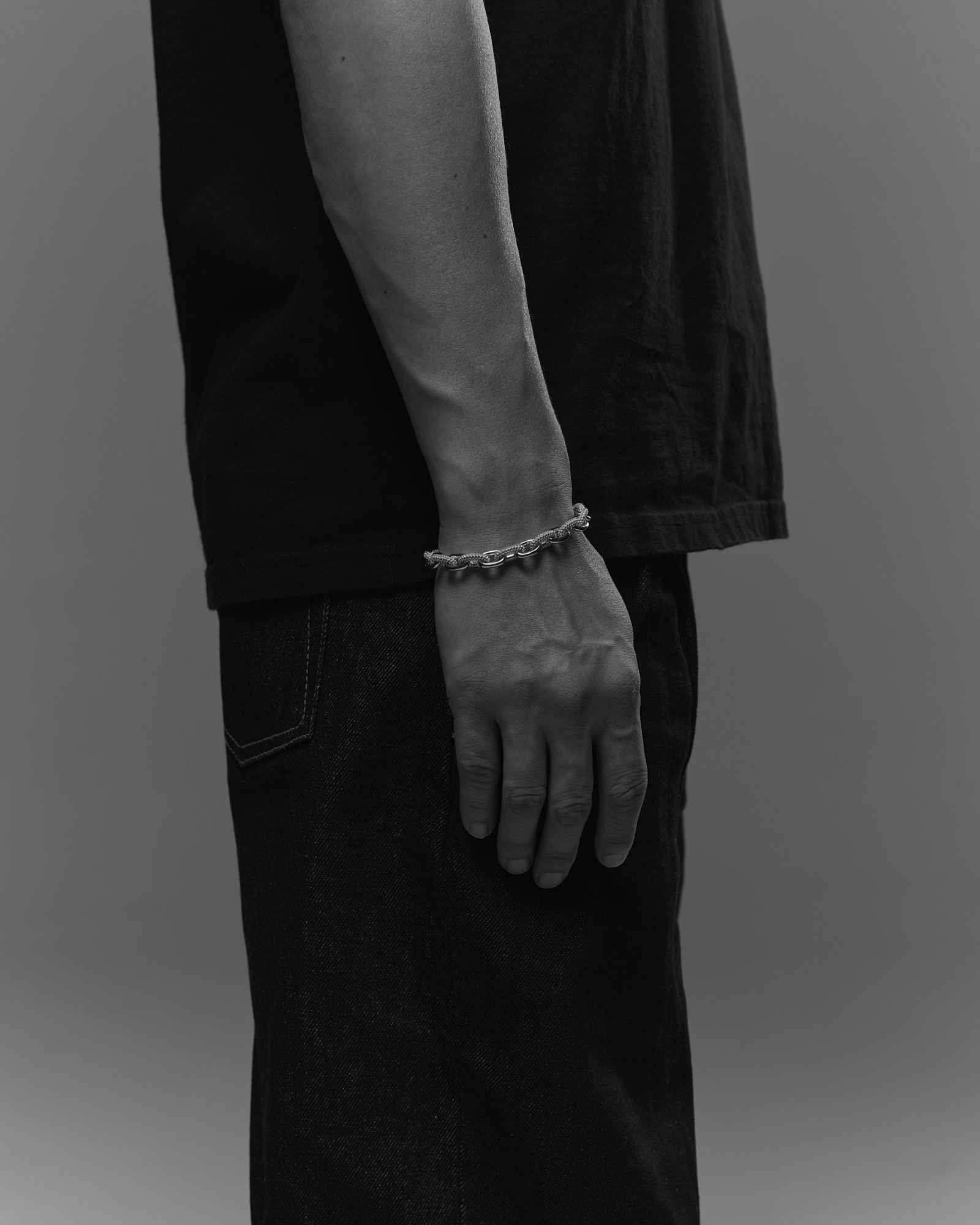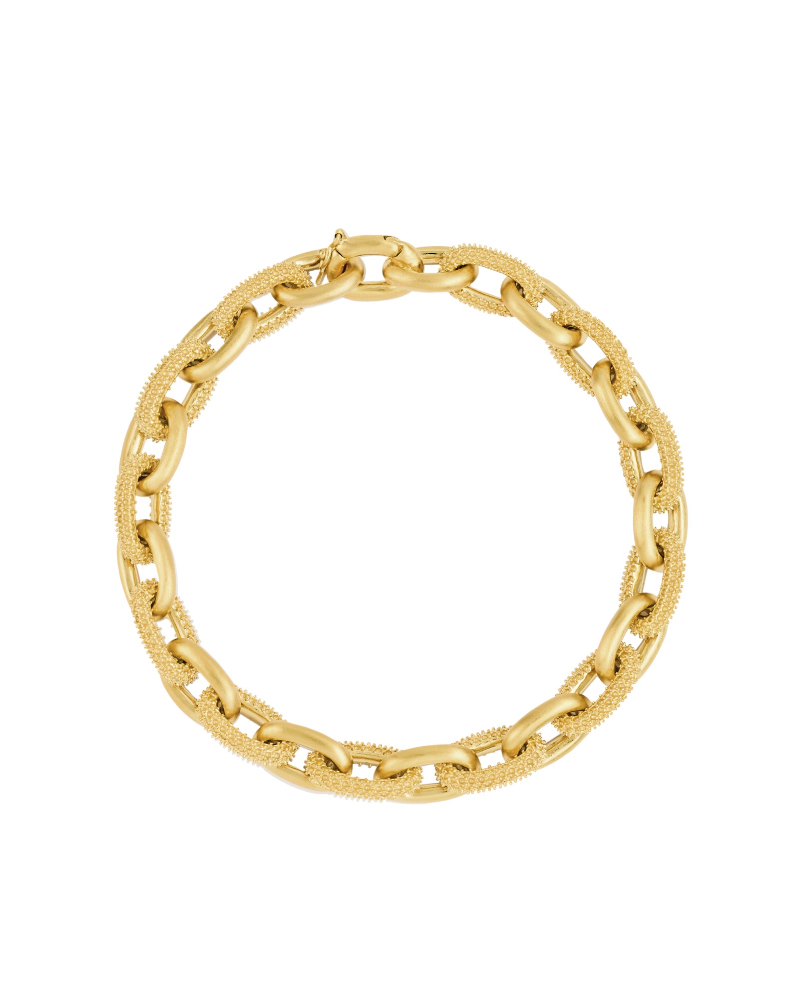 Our new bracelet in our Seamless series features alternative matte textured link with matte plain links. Custom push clasp. Due to the texture of the links, the bracelet can cause slight discomfort when worn.
