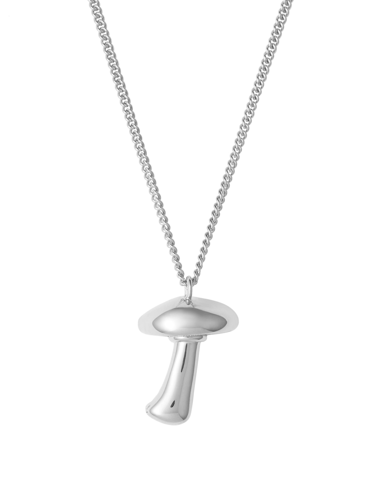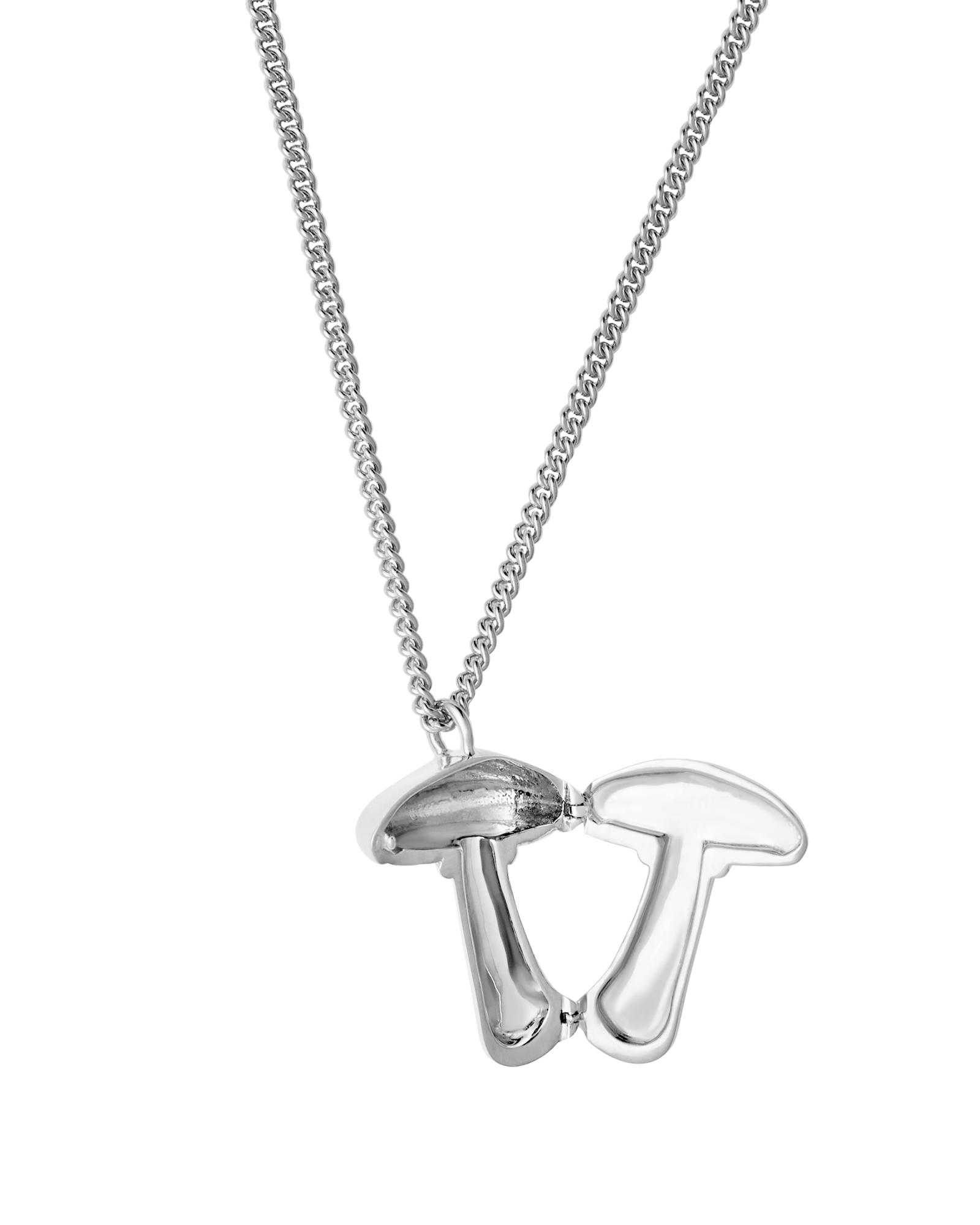 Adjustable curb chain necklace featuring a mushroom locket.