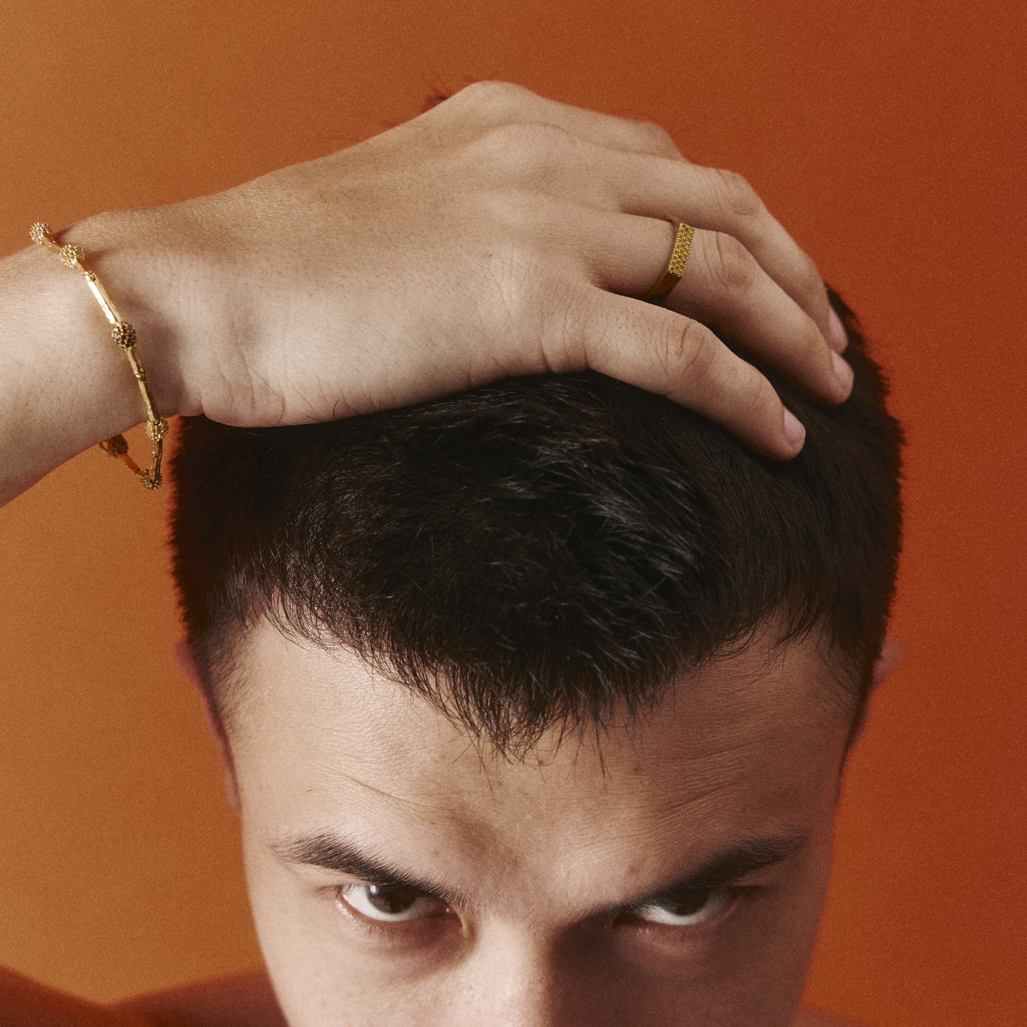 Androgynous bracelet with metal match. Each link is crafted to be seamlessly connected together. Thai craftsmanship at its finest. Due to the texture of these links, discomfort may occur and please avoid wearing with delicate clothing.