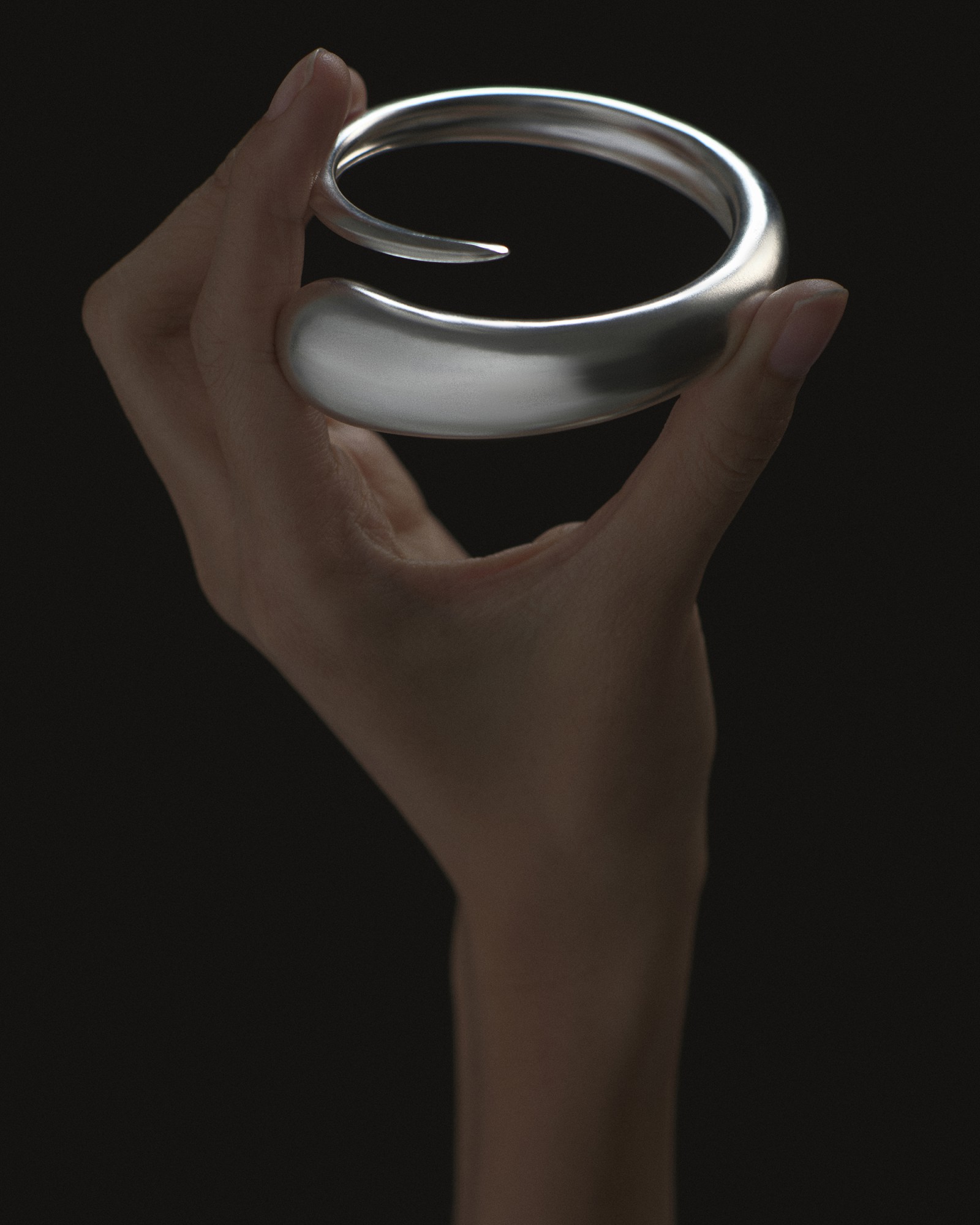 Spiral Tusk Cuff is a new expression of the brand’s signature Tusk series. PATTARAPHAN’s key minimalist elephant tusk form is reworked through the spiral, introducing controlled curves and a sculptural silhouette. The cuff marks the first exploration of the spiral motif in wearable form.