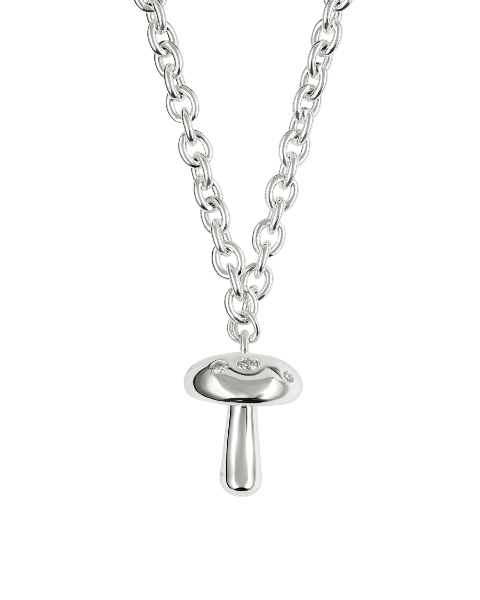 Stoned Shroom Pendant Chain Necklace, Diamond