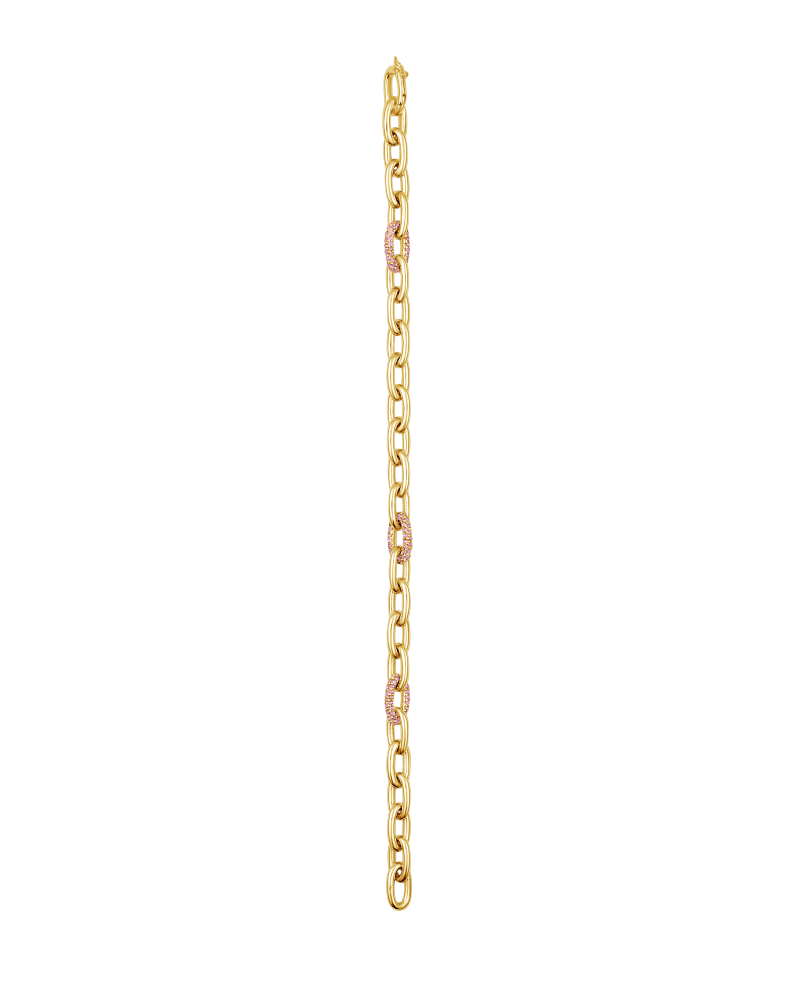 Introducing our Baby size in the seamless series for the first time with three pavé links. Featuring pink sapphires and a seamless custom clasp. Gemstones may vary in color.