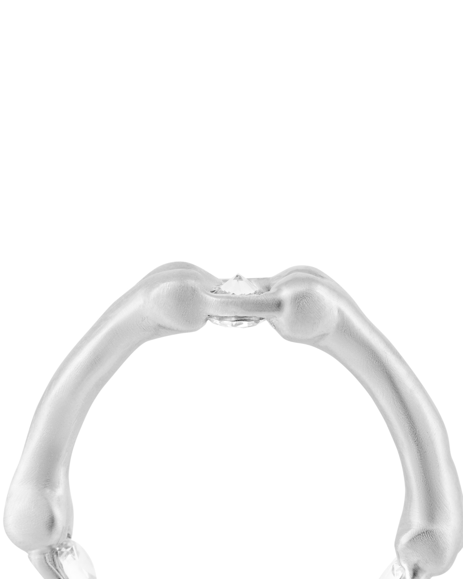 The Tri Remnants Ring III offers a more focused interpretation of the structure, with a single white topaz placed between each bone against the matte finish.