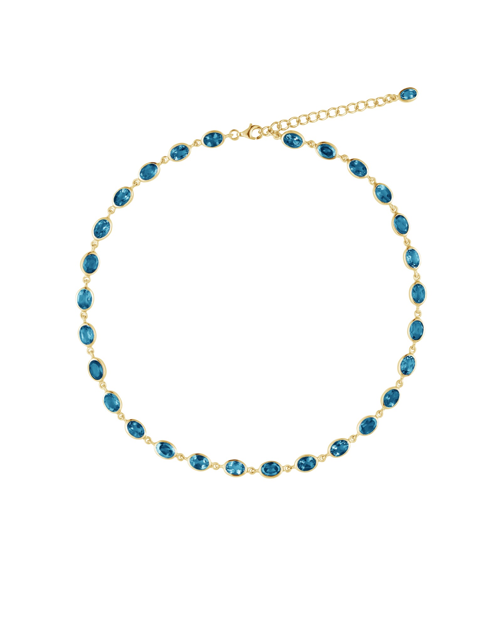 Traditional Thai design featuring oval-shaped London blue topaz, reimagined with a new perspective.